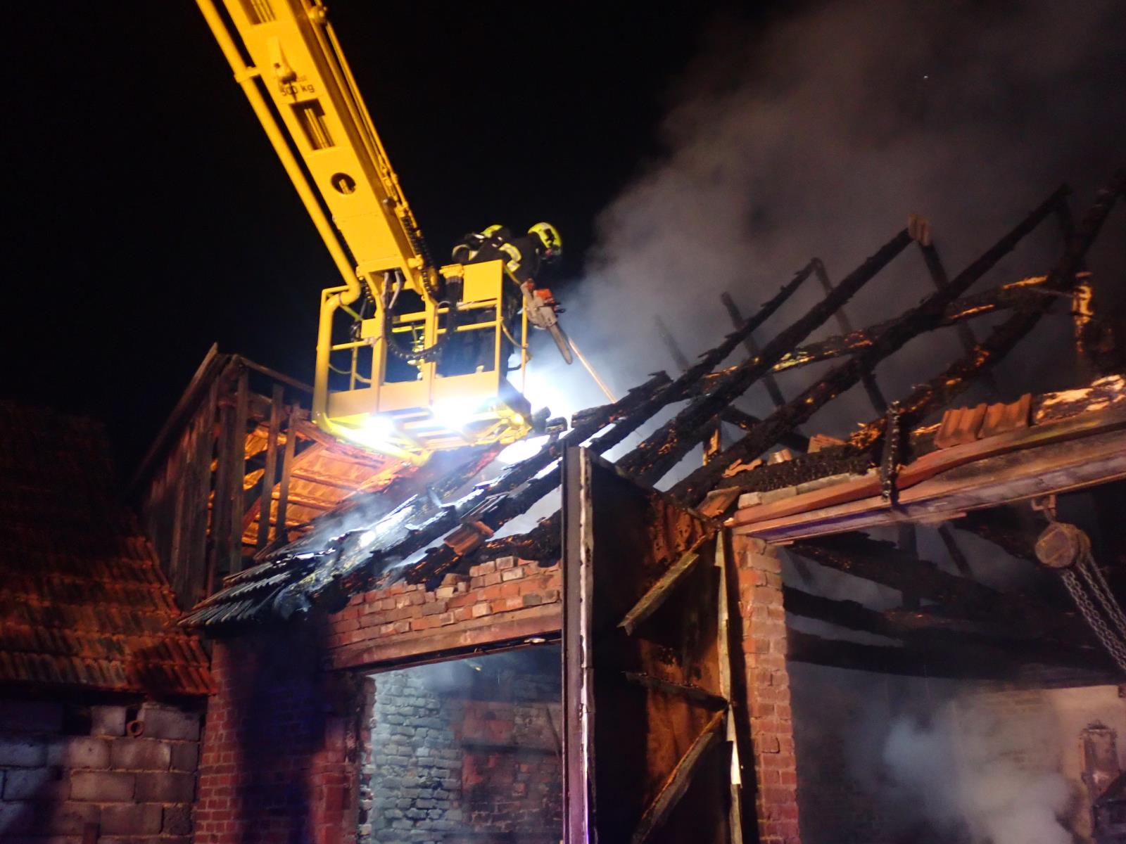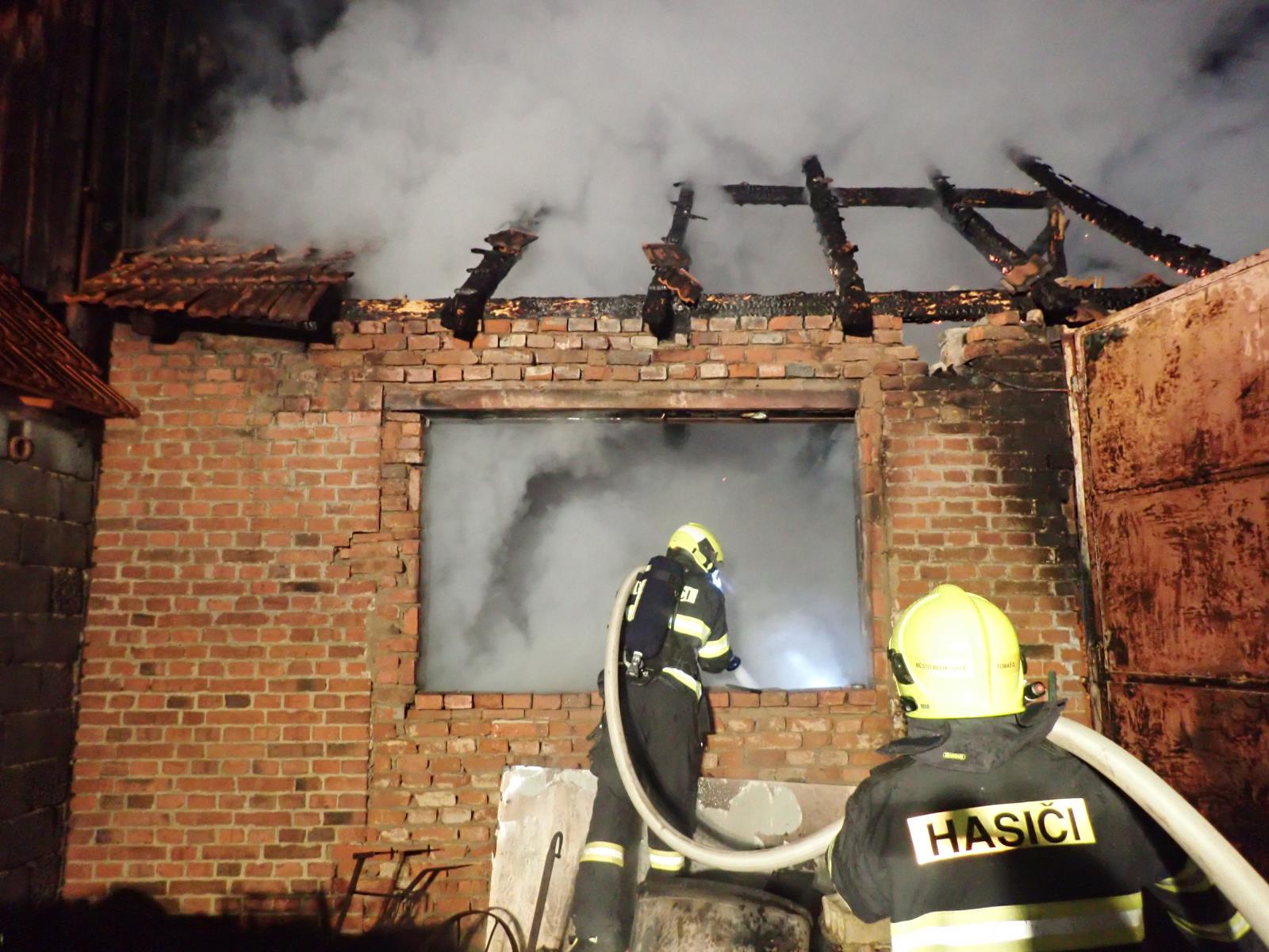 Hasiči hasili nejen požár zasažené budovy, ale ochlazovali i vedlejší přilehlou hospodářskou budovu na sousedním pozemku.