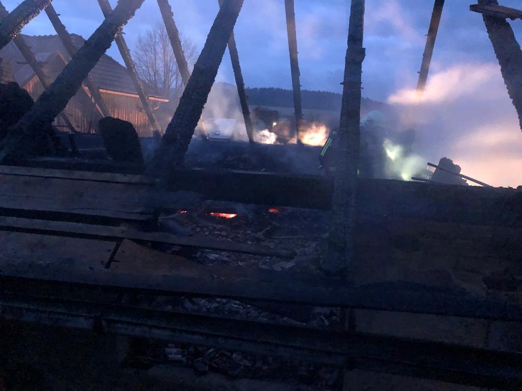 Po příjezdu jednotek byl celý objekt v plamenech a podle prvotních informací se neměl uvnitř nikdo nacházet, což se také potvrdilo. K likvidaci požáru hasiči použili několik proudů hasební vody. Požár měli brzy pod kontrolou. V těsné blízkosti hořícího objektu se nacházely osobní auta a hrozilo jejich poničení. Dvě auta tak hasiči museli přeparkovat dál od hořící stodoly.