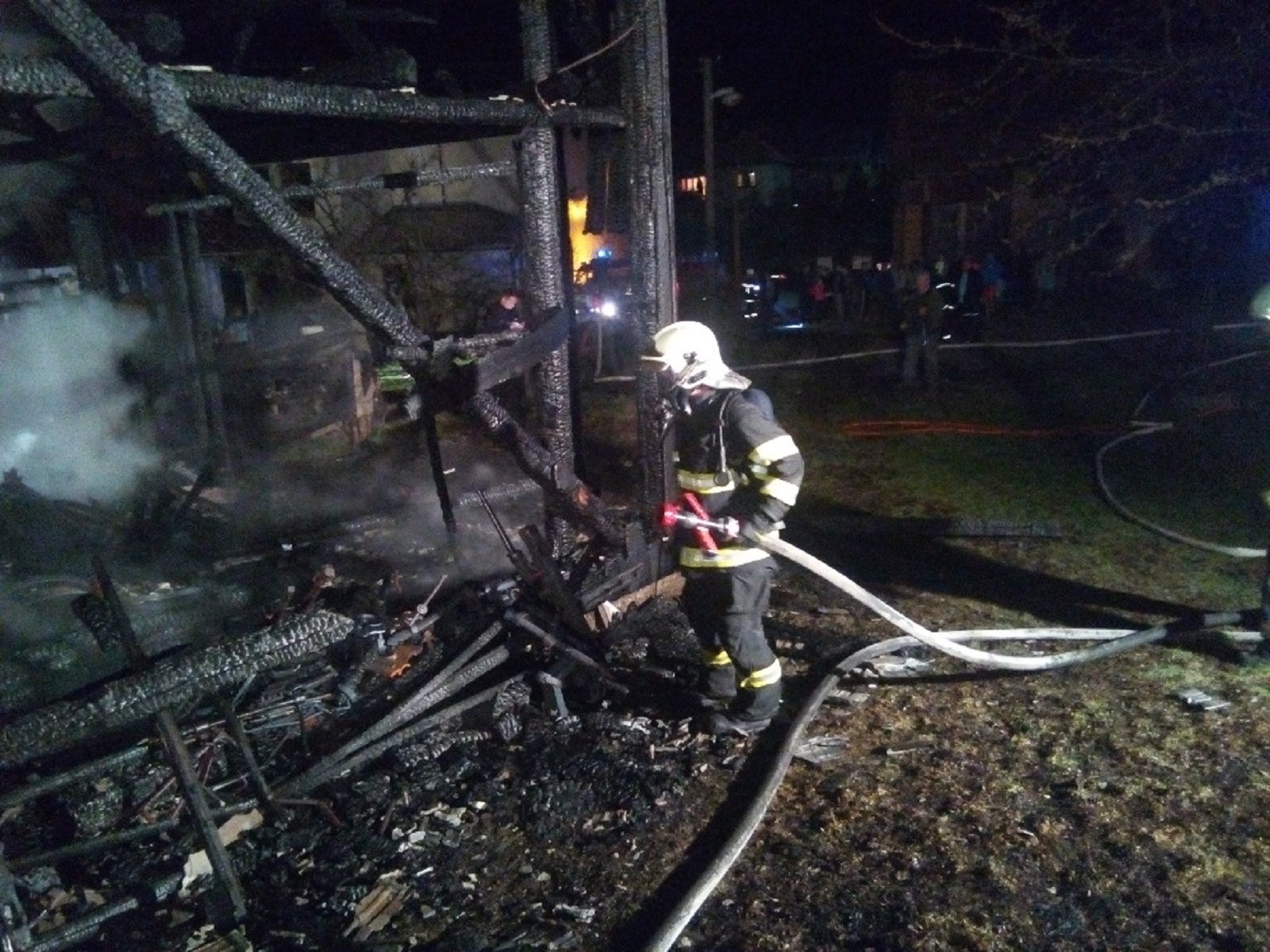 Provedeným průzkumem bylo zjištěno, že hospodářská budova je požárem zcela zničená. Hasiči nasadili k uhašení plamenů a ochlazování okolní blízké zástavby 9 proudů vody. Voda k hašení byla odebírána z dvou požárních hydrantů, které zprovoznili místní hasiči. Voda byla na místo požáru dopravována kyvadlově.