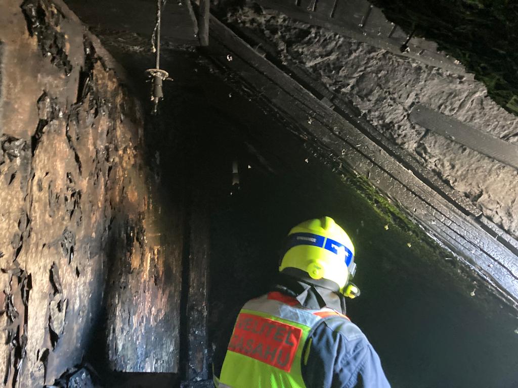 Po příjezdu na místo hasiči průzkumem zjistili, že k požáru došlo v podkrovní místnosti jednopatrového domu. Před příjezdem hasičů obyvatel domu požár uhasil pomocí zahradní hadice. Během krátké chvíle byl objekt plný kouře, kterého se nadýchal nejen muž, snažící se požár uhasit, ale i jeho žena. Proto si velitel zásahu na místo povolal posádku zdravotnické záchranné služby, která obyvatele domu ošetřila a následně převezla do nemocnice k dalšímu vyšetření.