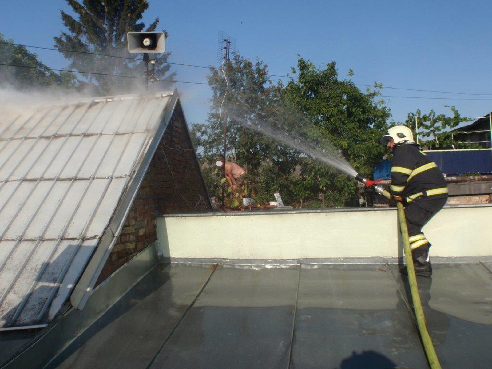 Hasební práce zahájili v 17:48 hodin profesionální hasiči z Morkovic – Slížan. Velitel zásahu potvrdil hořící střechu rodinného domu a vyžádal si pohotovostní službu dodavatele elektřiny a plynu. Hasiči zasahovali v dýchacích přístrojích. V době soustředění všech jednotek hasiči vytvořili celkem čtyři útočné proudy C a jeden vysokotlaký proud vody. Díky včasnému zásahu plameny nepřeskočily na sousední rodinný dům.