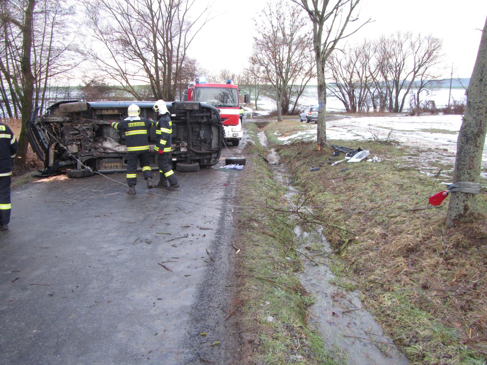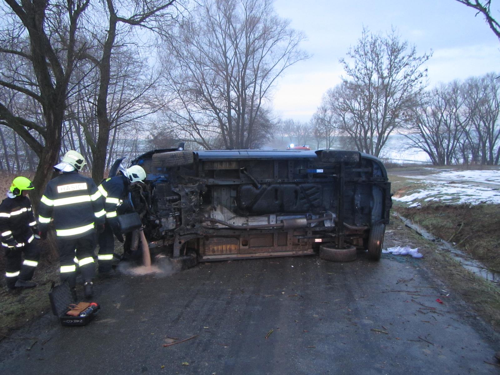 Hasiči po příjezdu k nehodě zjistili, že několik desítek metrů komunikace je namrzlé. Řidič se svým vozidlem skončil na boku. Při nehodě naštěstí nebyl zraněn. Došlo jen k úniku provozních kapalin, které hasiči zasypali sorbentem.