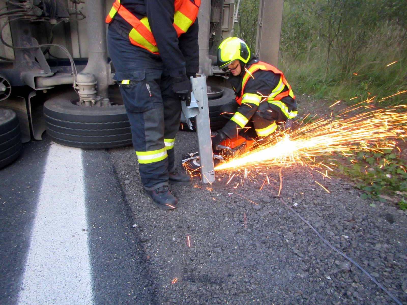 Aby bylo možné soupravu vyprostit, byla část svodidel odstraněna pomocí rozbrušovací pily. Po zadokumentování nehody policií bylo provedeno ve spolupráci s odtahovou službou ustavení tahače a návěsu zpět na kola a jejich odtažení mimo vozovku. Po provedení kompletního úklidu komunikace od přepravovaného obilí i úlomků z vraku vozu byla doprava obnovena a jednotka se ve 21:21 hodin vrátila zpět na základnu.