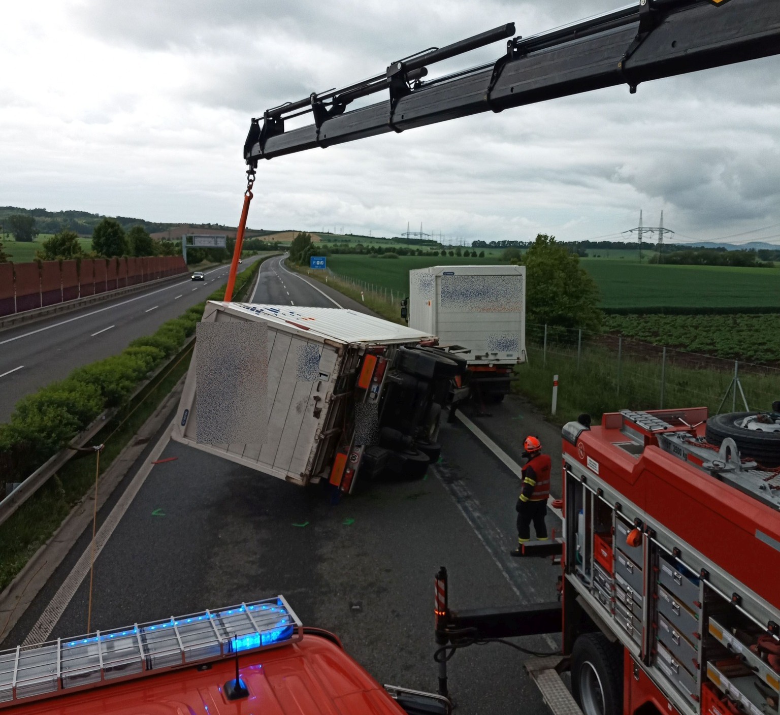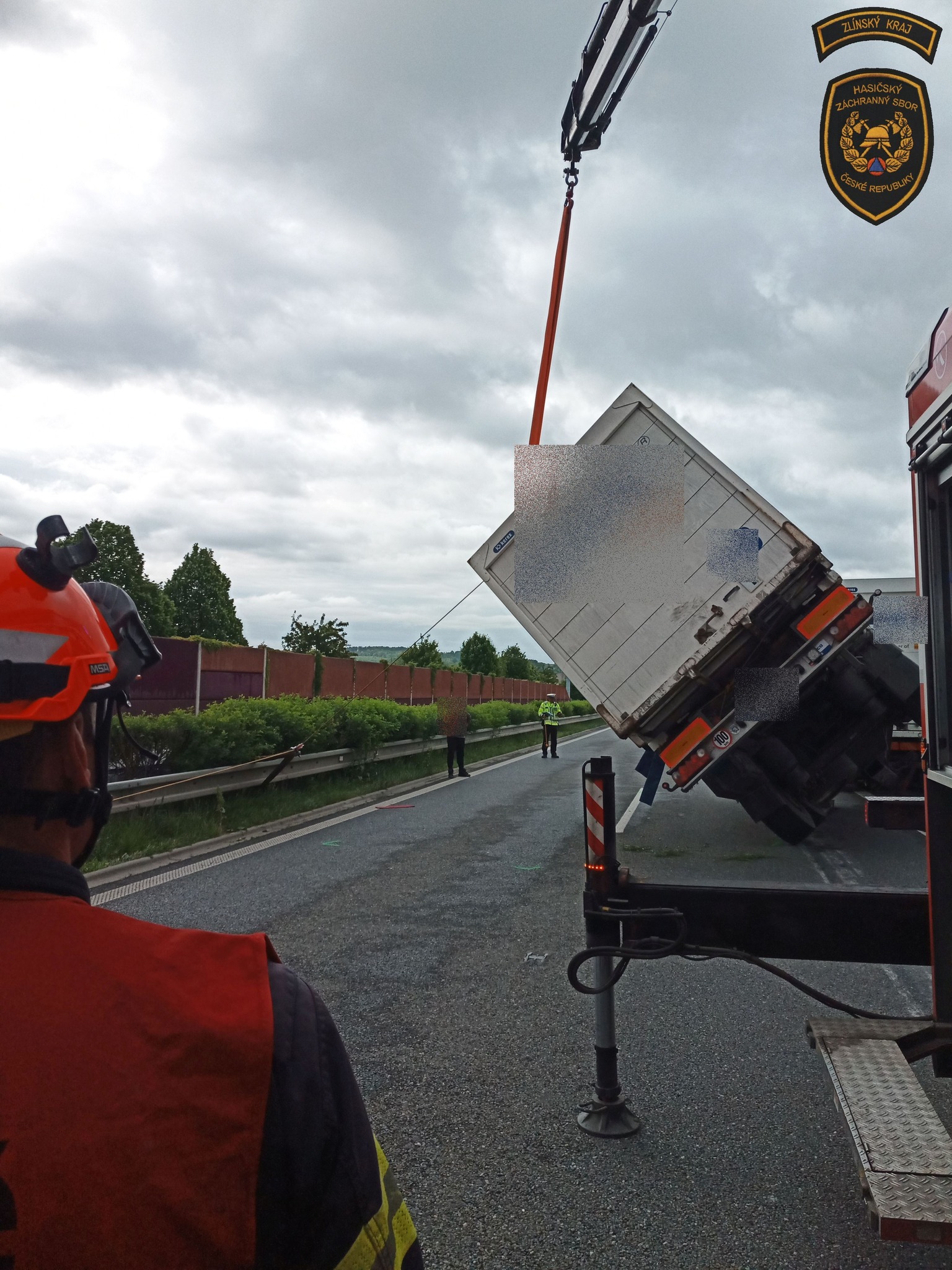 Pohled na scénu připomínal dramatickou sekvenci z filmu – obrácený přívěs, pod nímž mizela dálnice, zatímco hasiči v oranžových vestách obcházeli kolos a připravovali vše potřebné pro zvednutí těžké kovové masy zpět na kola. Práce byla precizní a nebezpečná. Každý chybný pohyb mohl znamenat další komplikace.