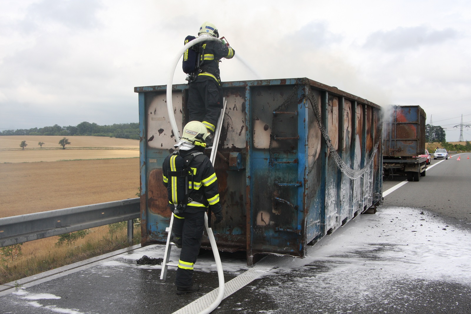 V době příjezdu hasičů stál nákladní automobil v odstavném pruhu. Řidič odpojil přívěs a do odstavného pruhu sundal ocelový kontejner. Následně od hořícího kontejneru poodjel.
