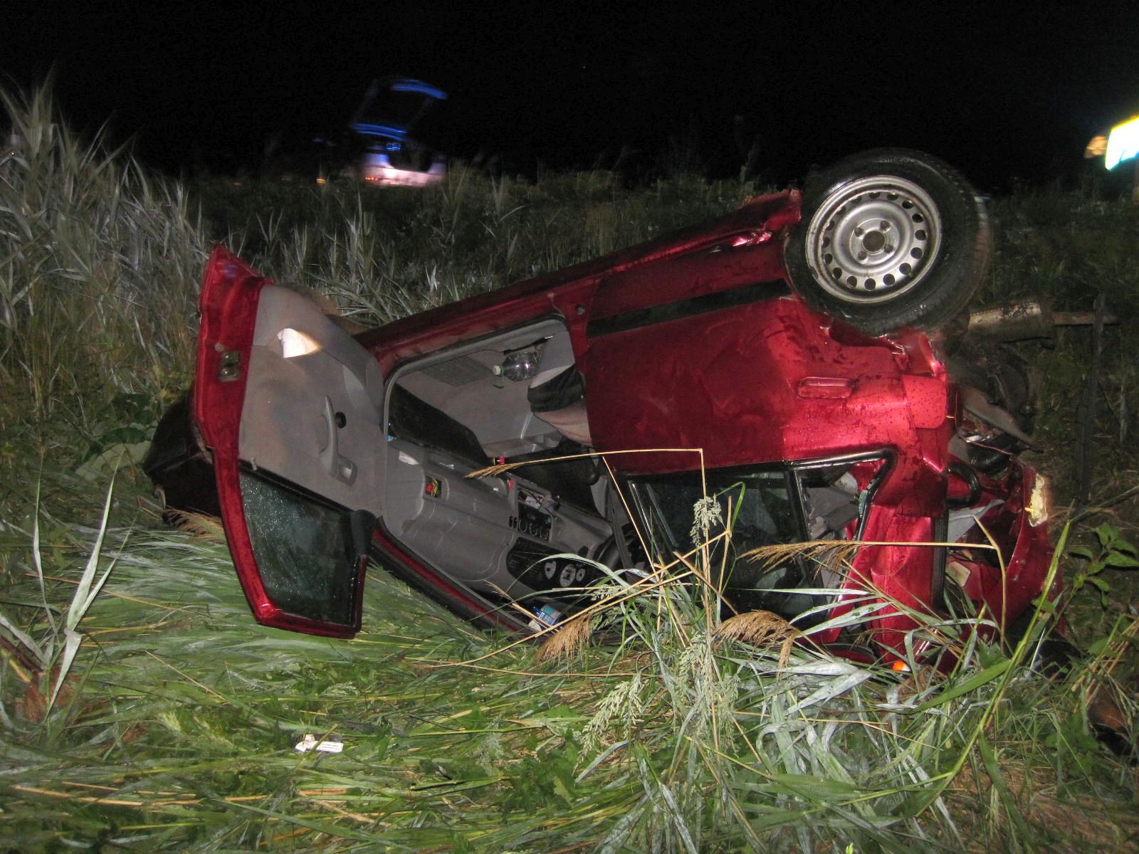 Na místo hlášené dopravní nehody dvou osobních vozidel byli uherskobrodští profesionální hasiči vysláni v 00:21 hodin. Po nehodě zůstalo jedno z vozidel stát na komunikaci a druhé skončilo převrácené na střeše v příkopu.