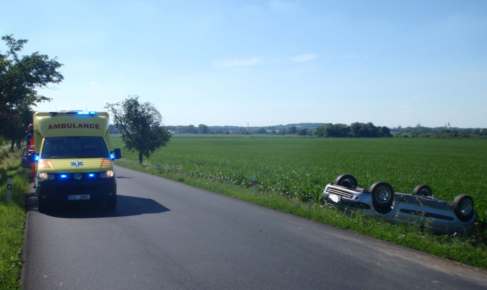 Osobní vozidlo zn. Citroen skončilo převrácené na střeše za krajnicí komunikace. V době příjezdu hasičů už na místě zasahovali záchranáři, kteří měli ve své péči zraněnou řidičku vozidla. Hasiči zajistili místo nehody a zabezpečili havarované vozidlo proti vzniku požáru a úniku provozních kapalin. Po zadokumentování nehody policisty hasiči pomohli vozidlo převrátit zpět na kola a vytáhnout na komunikaci, kde bylo naloženo na odtahovou službu.