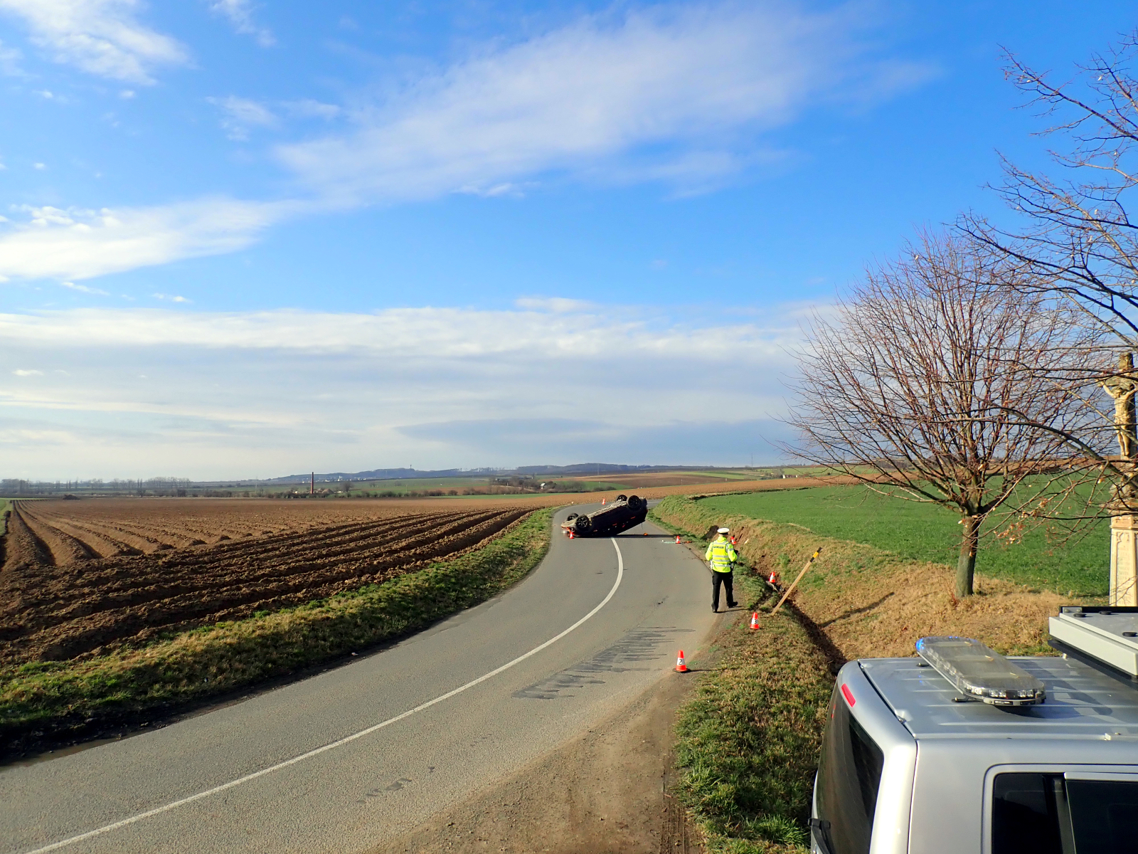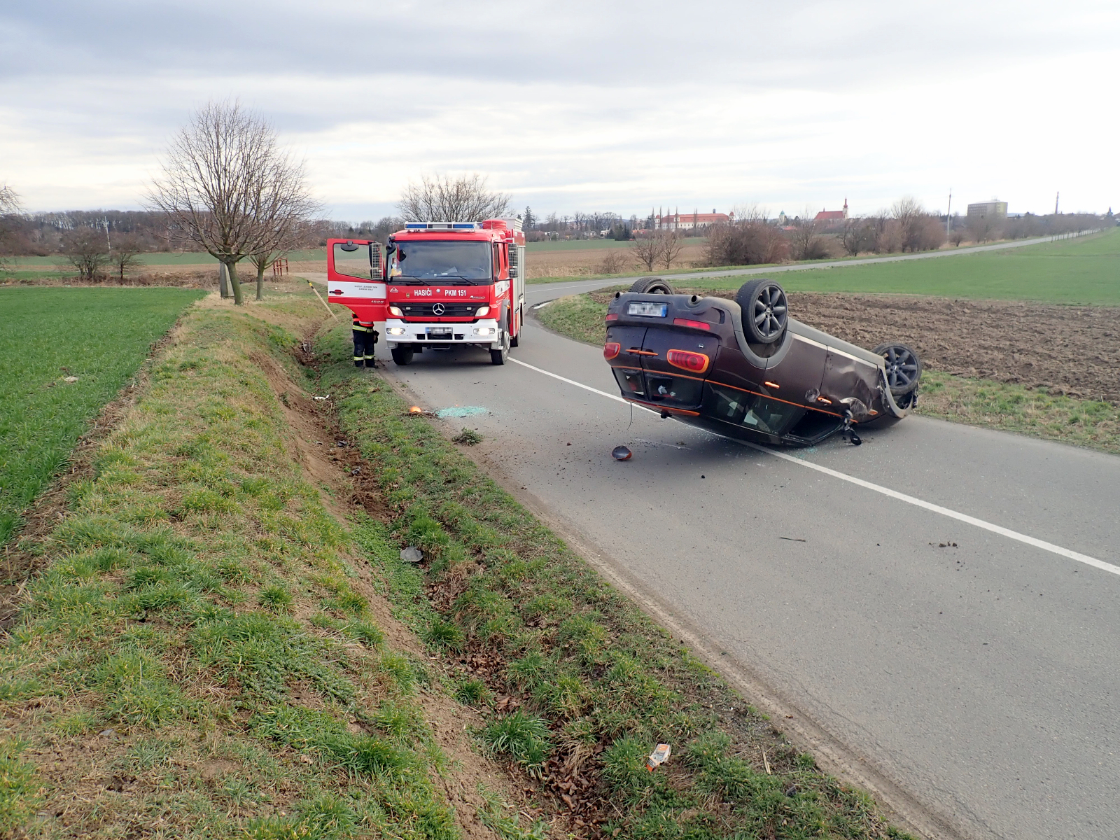 (1. 3. 2020)V 14:26 hodin přijali hasiči žádost o pomoc při dopravní nehodě osobního automobilu, která se stala u Holešova ve směru na obec Tučapy. K události okamžitě vyrazili profesionální hasiči ze stanice Holešov s jedním cisternovým vozem.