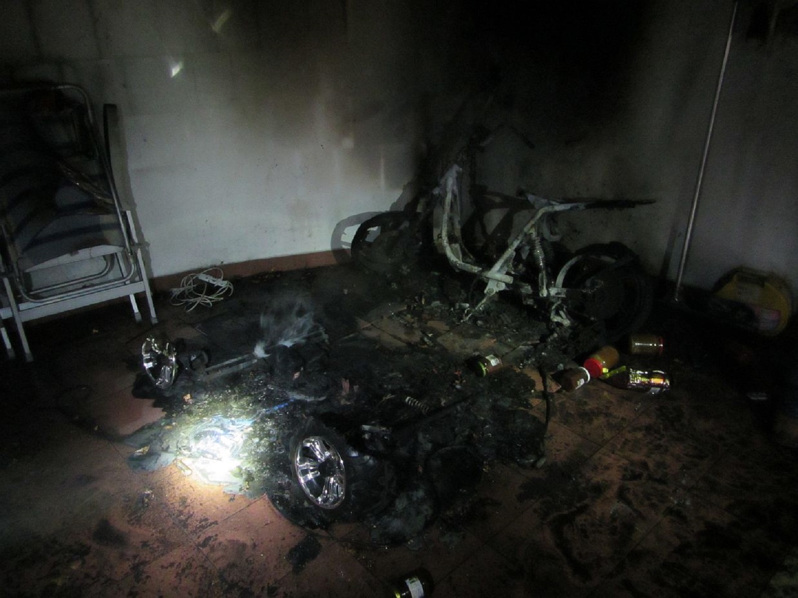 Hasiči průzkumem zjistili, že v části garáže hoří skůtr. V garáži byly zaparkované dva luxusní osobní automobily a karavan. Hasiči v dýchacích přístrojích požár uhasili jedním vysokotlakým proudem vody. Termokamerou provedli kontrolu teplot stavebních konstrukcí a dále provedli přetlakové větrání garáže.