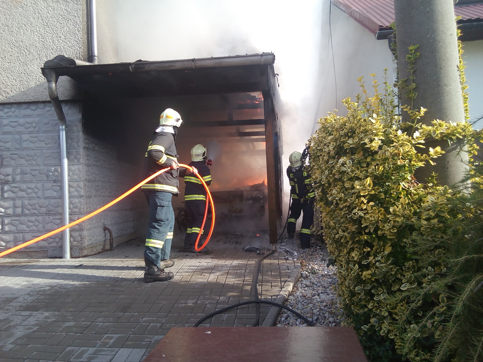 Hlášení o požáru karavanu a přístřešku na ulici Na Výsluní ve Valašských Kloboucích přijali hasiči v 8:43 hodin. Operační důstojník vyhlásil požární poplach jednotce profesionálních hasičů z požární stanice Valašské Klobouky a jednotkám dobrovolných hasičů z Valašských Klobouk a Brumova. K požáru vyjely celkem čtyři automobilové cisterny.