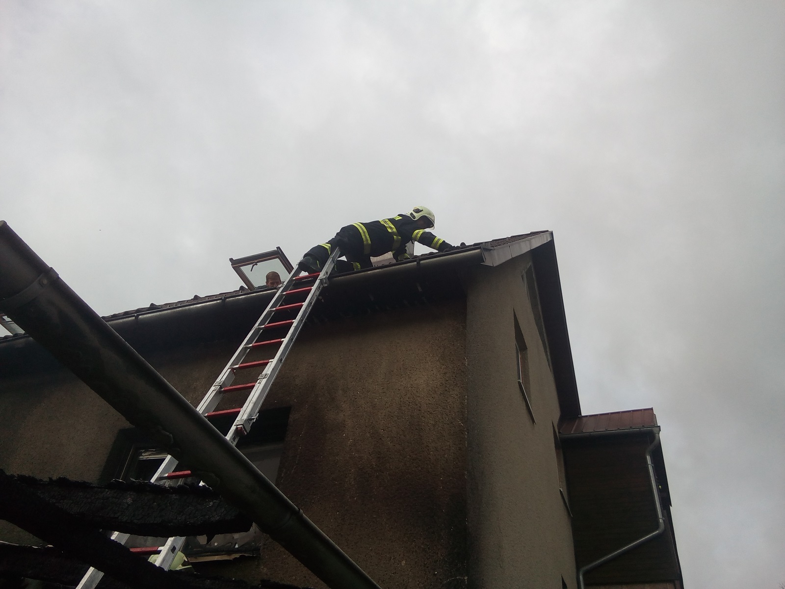 Jednotka dobrovolných hasičů z Valašských Klobouk zůstala na místě požáru na dohlídku.