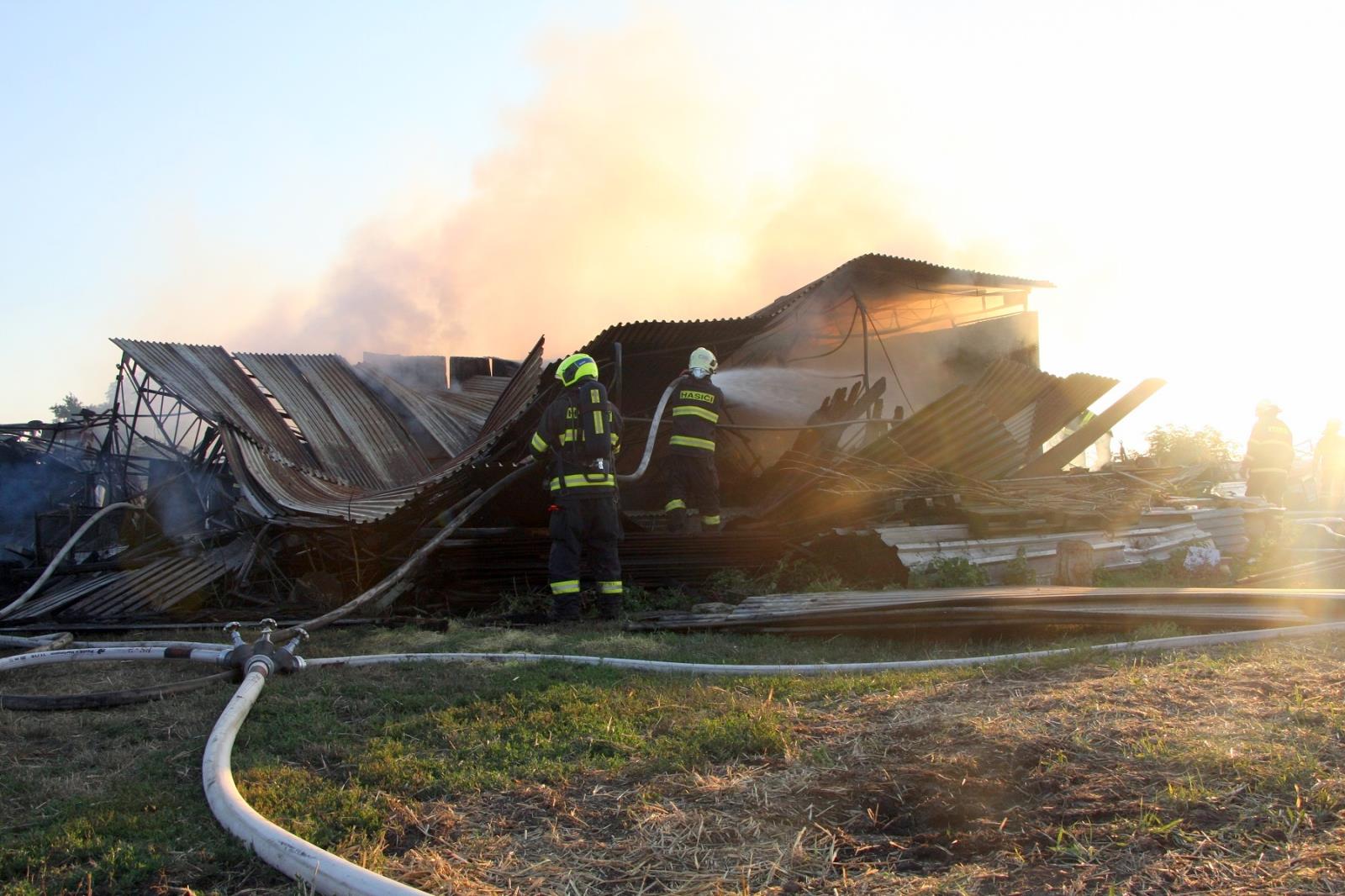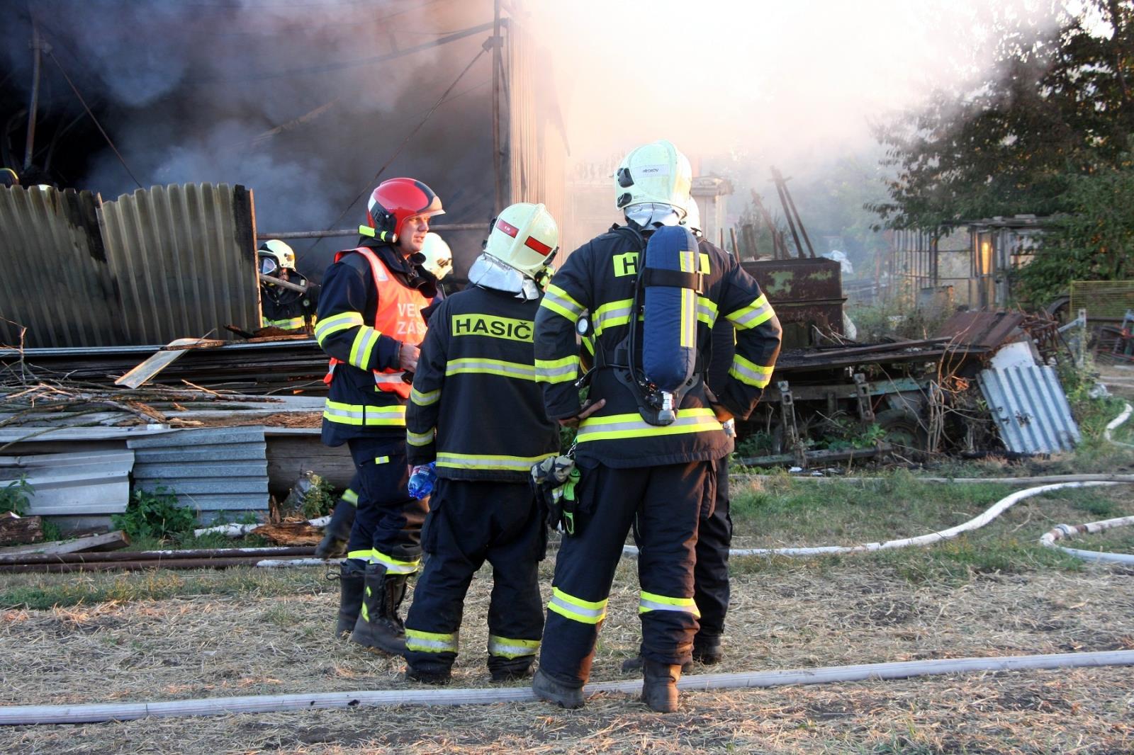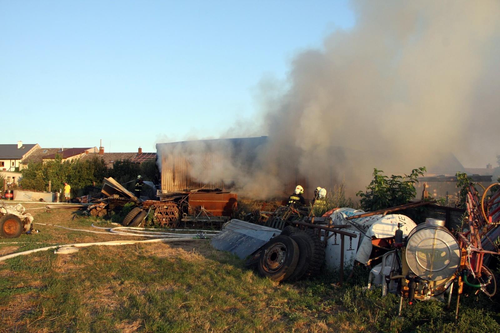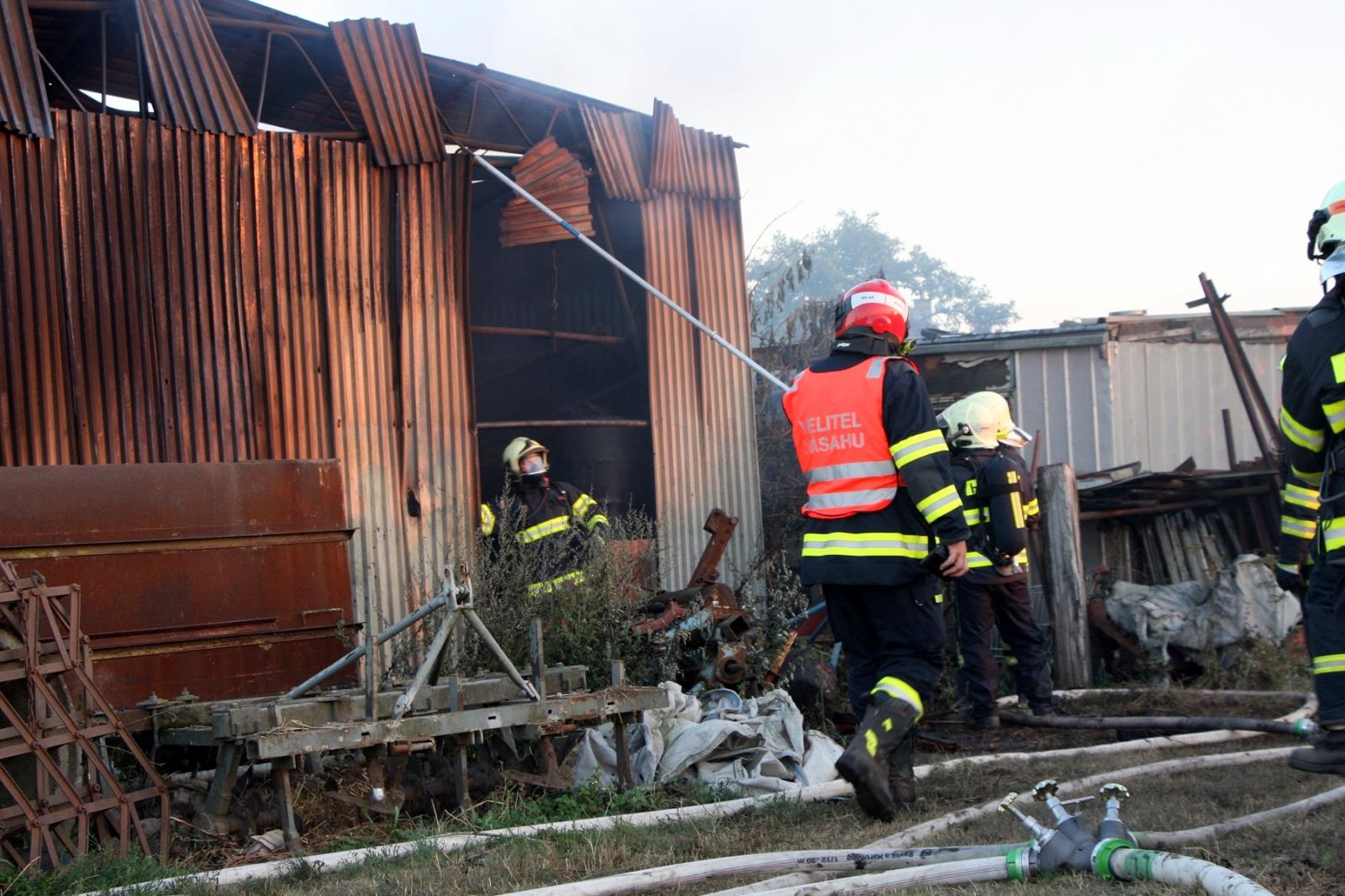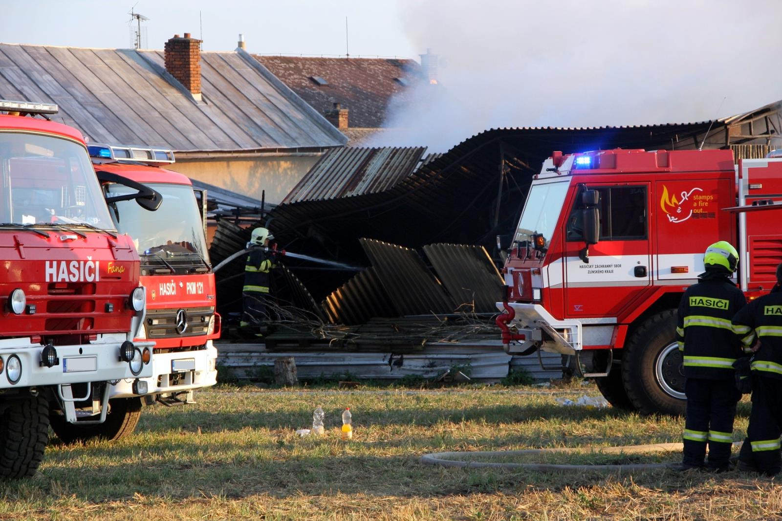 Po příjezdu první jednotky profesionálních hasičů z Holešova byla událost potvrzena a s ohledem na rozsah byly okamžitě povolány posilové jednotky. Na pokyn velitele byla zahájena požární obrana, aby nedošlo k rozšíření na blízký rodinný domek a další stavby. Jak bylo upřesněno, požár zasáhl plechovou stavbu o rozměru asi 10x10 metrů, ve které byly uloženy různé stroje, nářadí a sláma.
