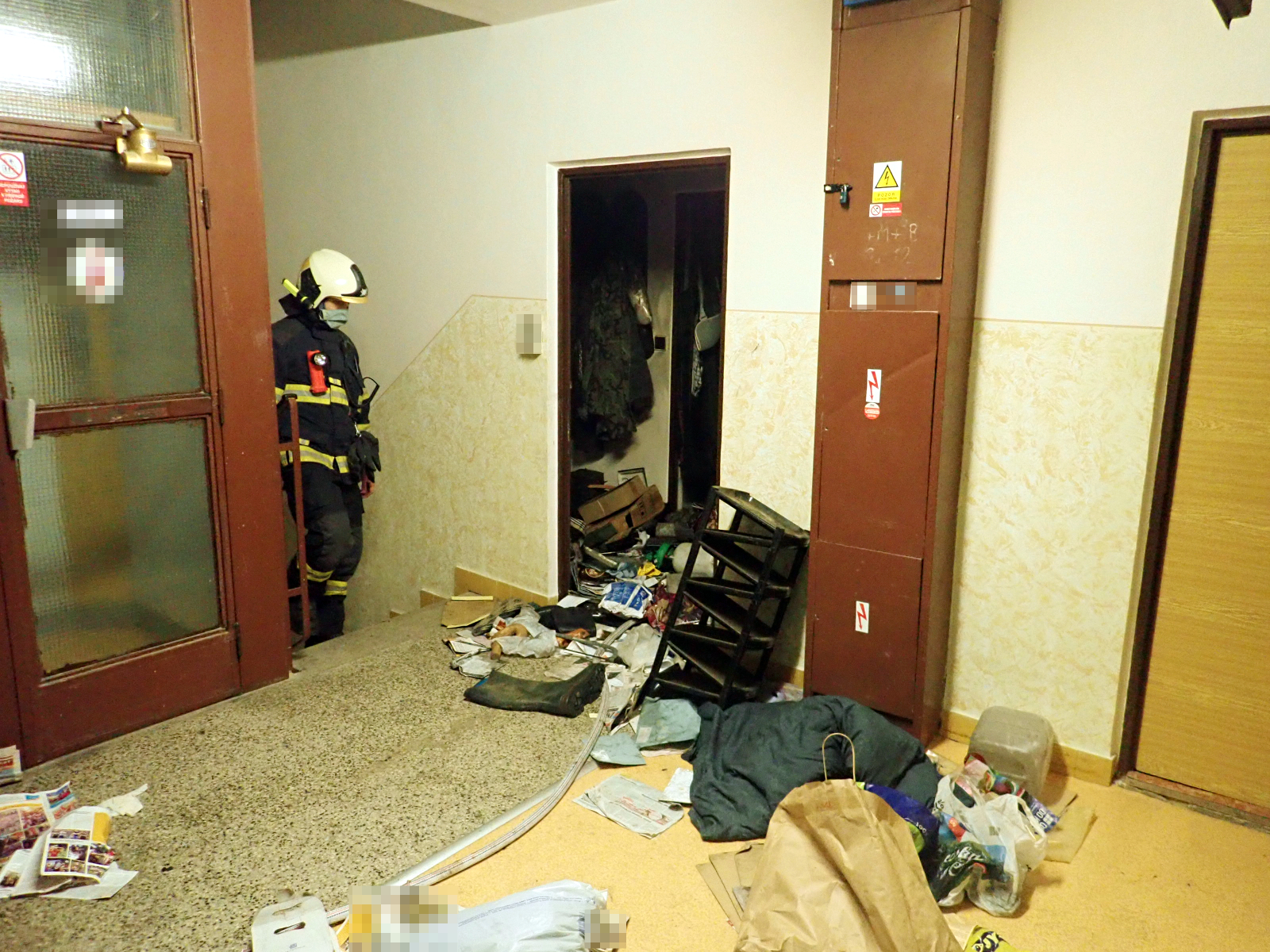 Aby bylo možné dohasit i skrytá ohniska, provedli hasiči částečné vyklizení uskladněného materiálu, při kterém bylo nalezeno i několik zbraní. Po likvidaci požáru v 4:54 hodin byl proto byt předán policii, a na místě bude i nadále probíhat šetření vzniku události. Výše škod prozatím nebyla stanovena.