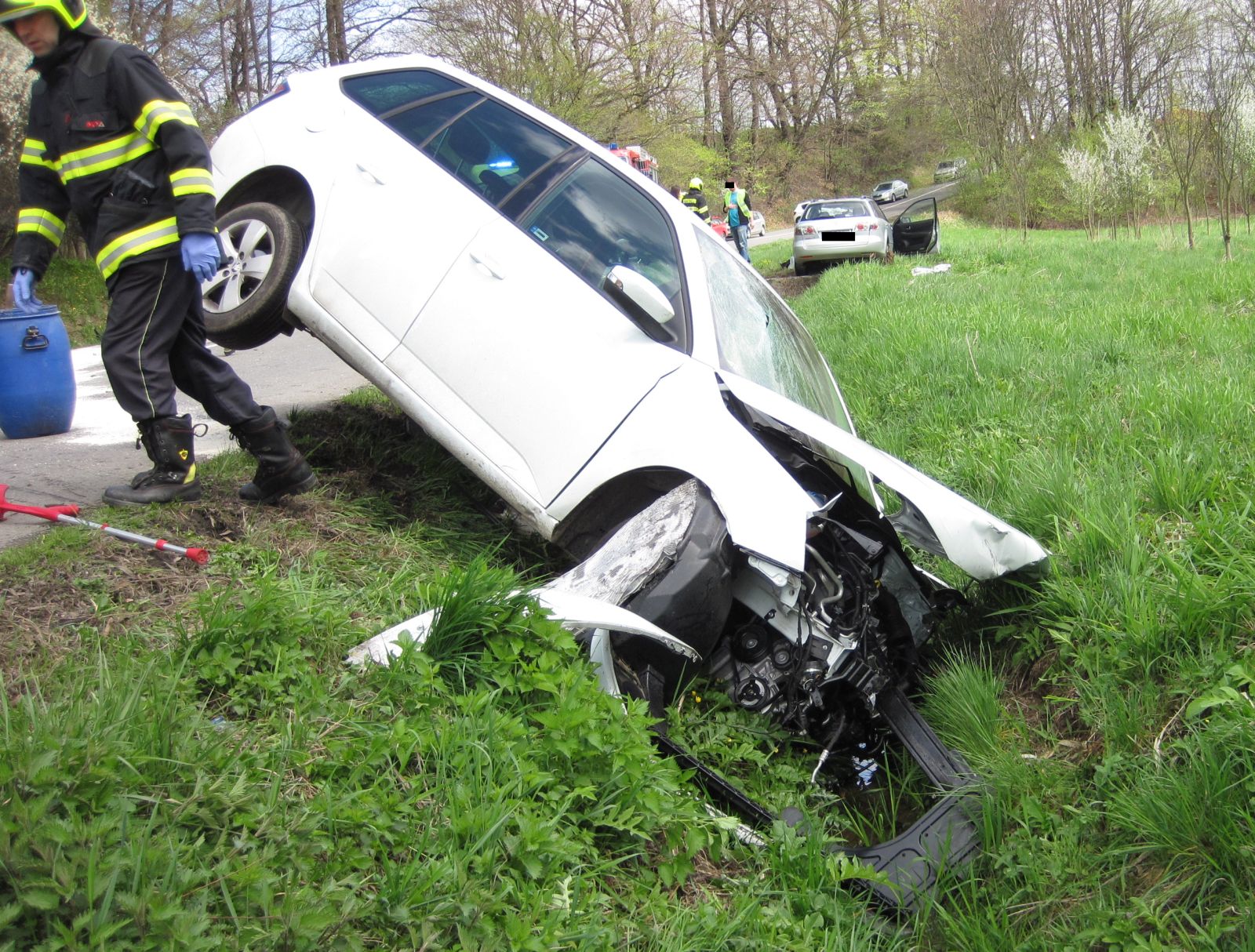 Hasiči zajistili místo nehody a zabezpečili havarovaná vozidla proti vzniku požáru. Po střetu vozidel došlo k většímu úniku provozních kapalina na komunikaci. Ten hasiči likvidovali pomocí sorbentů. Jedno z vozidel zůstalo po nehodě částečně ve strouze za krajnicí komunikace kde tekl menší potok. Hasiči z preventivních důvodů zahradili koryto a na hladinu umístili sorpční hady.