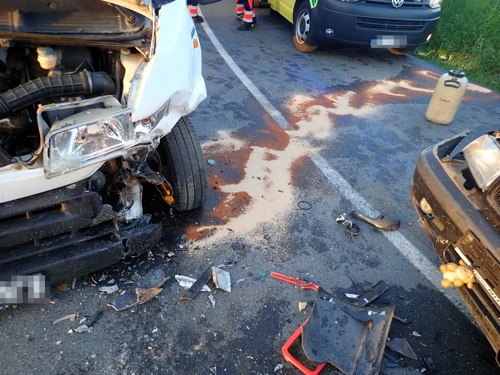 Škoda Felicia s dodávkou značky Fiat. V době příjezdu hasičů již na místě zasahovala zdravotnická záchranná služba, která si do své péče převzala zraněné osoby. Do nemocnice bylo postupně odvezeno celkem pět účastníků nehody.