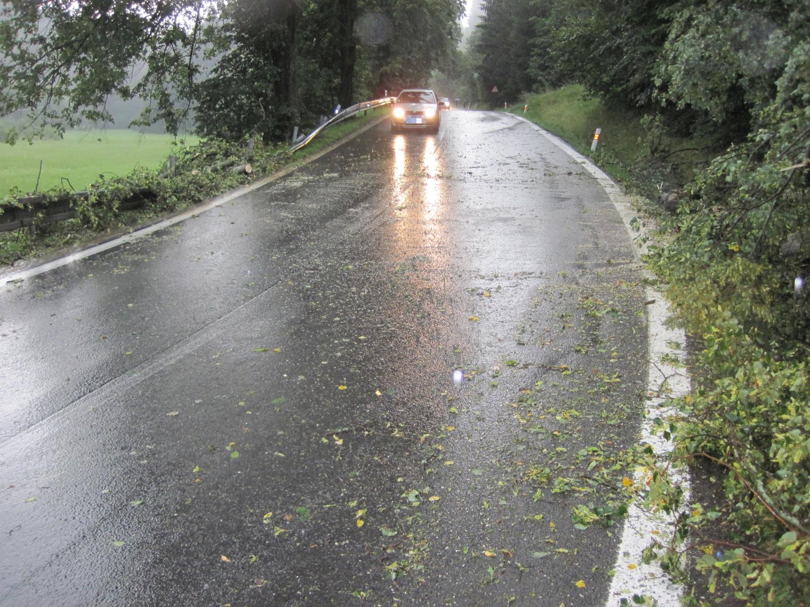 Přívalový déšť na Vsetínsku způsobil popadaní stromů, které zatarasily silnici