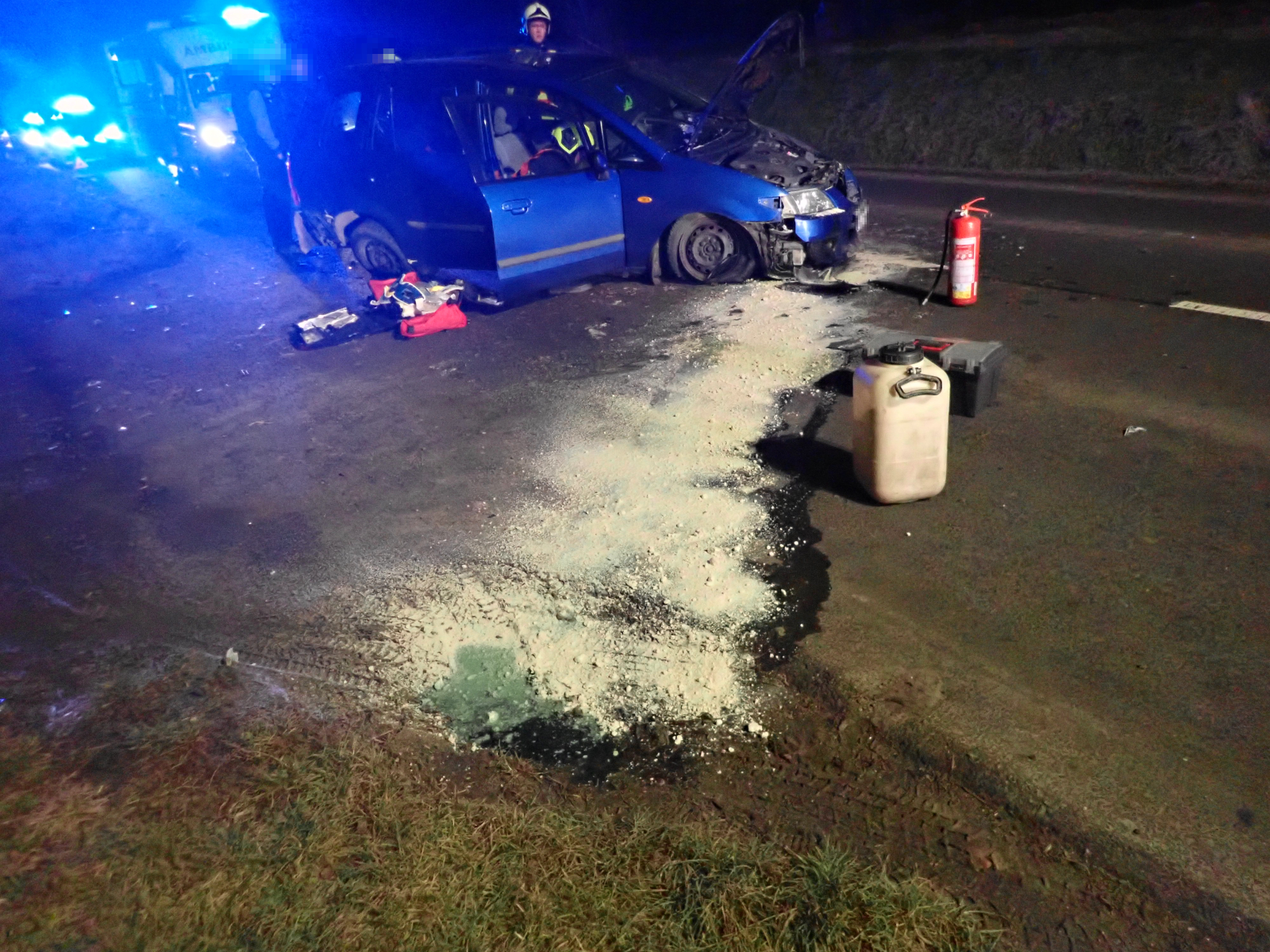 Na místě události bylo prvotním průzkumem zjištěno, že řidič se svou Mazdou nejprve narazil do břehu vedle vozovky, a následně skončil s vozem zpět v jednom jízdním pruhu. Sám byl při nehodě zraněn, ale nebylo nutné jeho vyproštění. Hasiči proto zajistili místo události a pomohli s naložením řidiče do vozu zdravotnické záchranné služby. Následně byl odvezen do nemocnice.