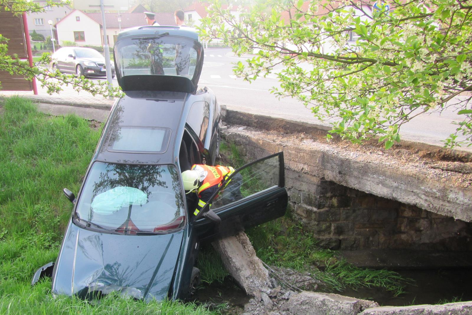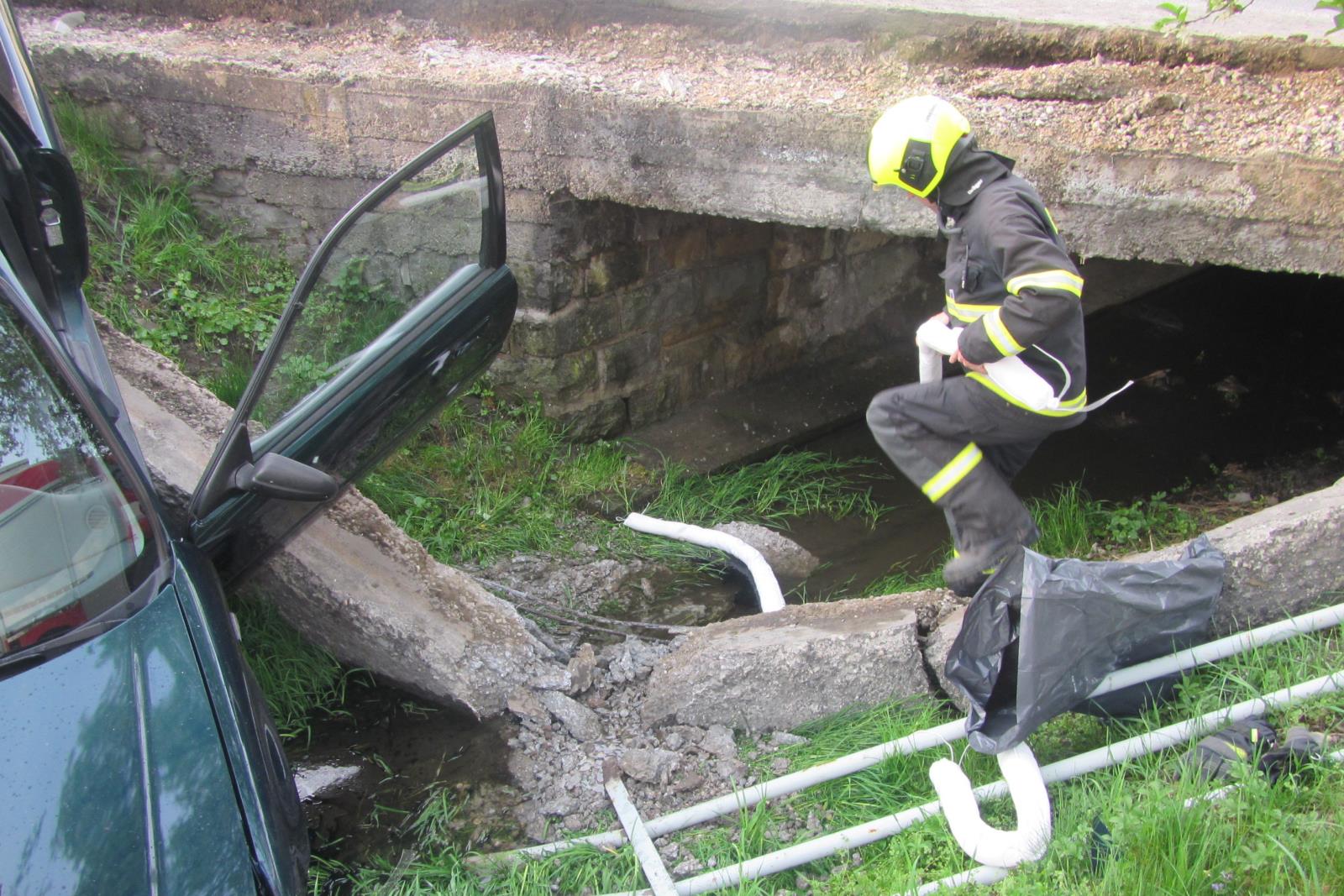 Řidič při nehodě neutrpěl žádné zranění. Z vozidla však začal vytékat do vody olej. Přivolaní hasiči proto ihned po svém příjezdu umístili do vody sorbční hady.