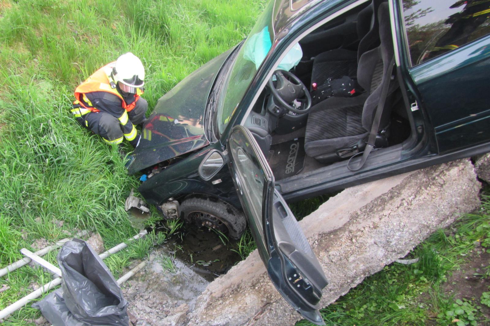 Řidič na Zlínsku s vozidlem skončil v potoce