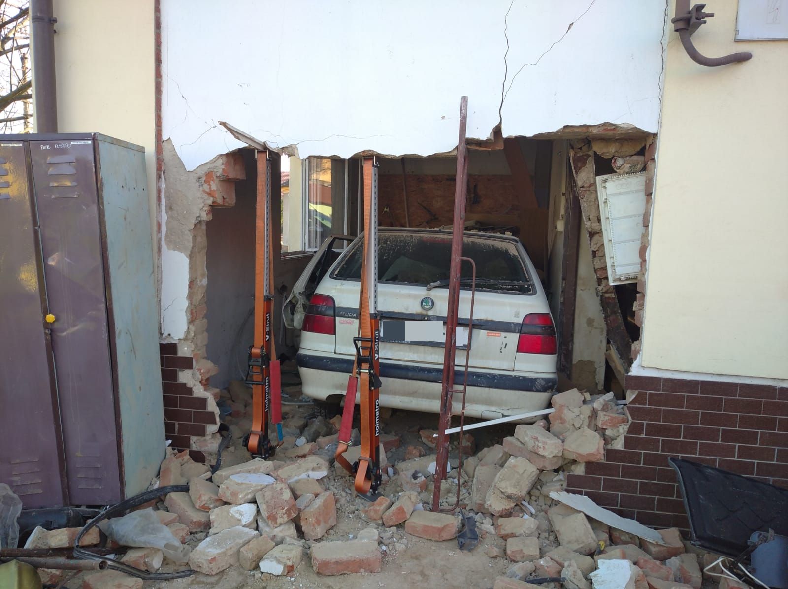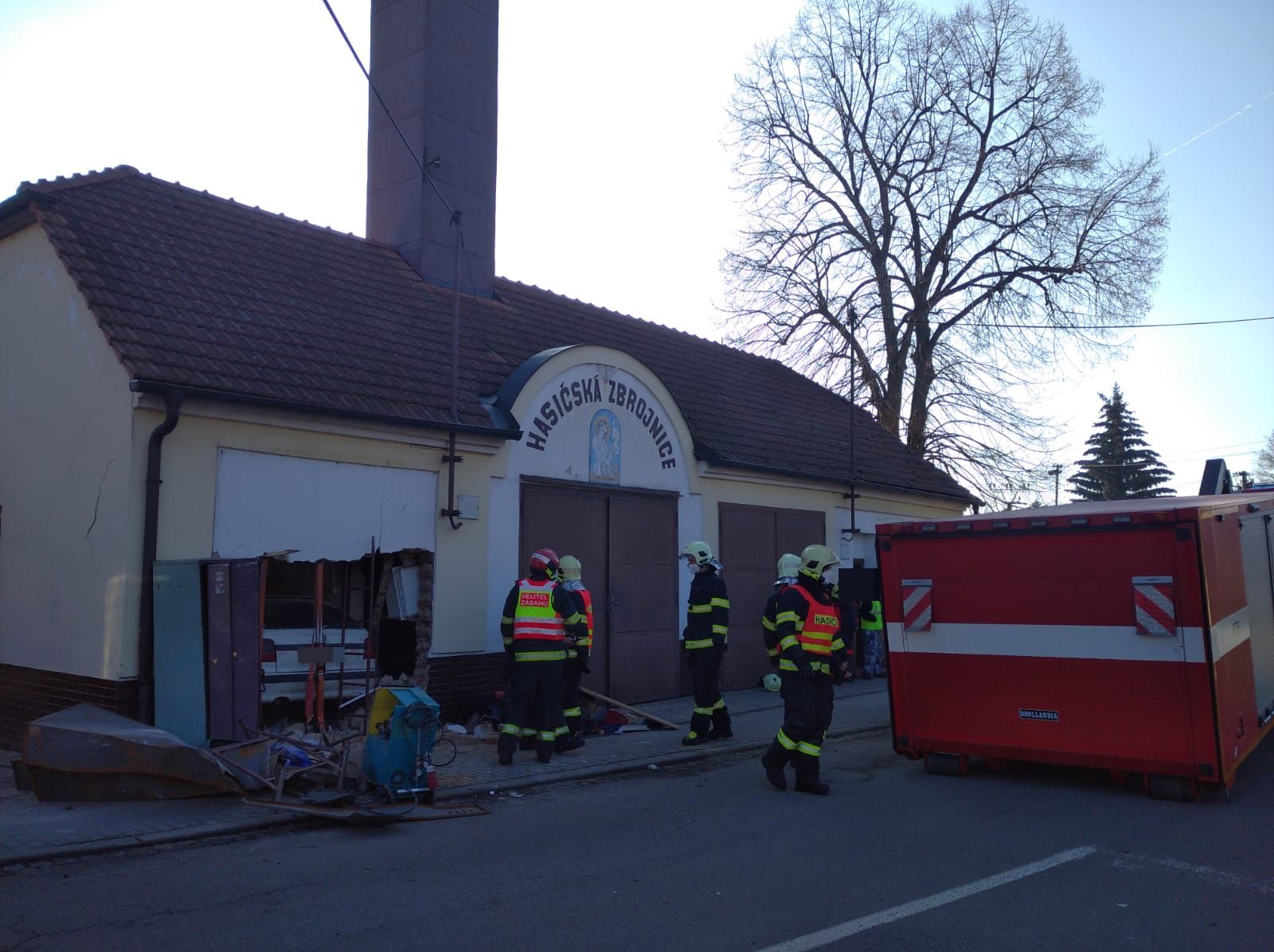 Profesionální hasiči ze stanice Uherské Hradiště vyjeli dnes krátce před půl třetí odpoledne k havárii osobního vozidla v Boršicích na Uherskohradišťsku. Po příjezdu na místo hasiči zjistili, že řidič osobního vozidla narazil do budovy místní hasičské zbrojnice, prorazil obvodovou stěnu a zastavil se až uvnitř budovy. Řidič po nehodě zůstal ve vozidle zaklíněn. Hasiči muže z vozidla vyprostili s pomocí hydraulického vyprošťovacího zařízení a páteřové desky a předali do péče posádce zdravotnické záchranné služby. Velitel zásahu si na místo povolal technický kontejner ze Zlína, který obsahuje stabilizační soupravu. Hasiči páskou vyznačili nebezpečný prostor okolo budovy a provedli prvotní stabilizaci poškozeného objektu. Následně hasiči vytáhli osobní vozidlo ven z budovy.