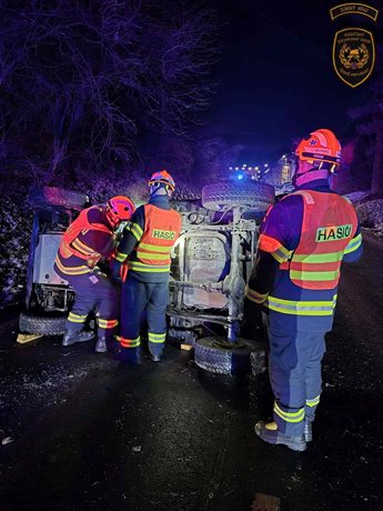 Cestu k místu události komplikovala kluzká vozovka, která zvyšovala riziko dalších nehod. Po příjezdu hasiči zjistili, že řidič je již v péči záchranářů a je schopen komunikace. Vozidlo stabilizovali a zajistili, aby se nepřevrátilo a neohrozilo okolí.
