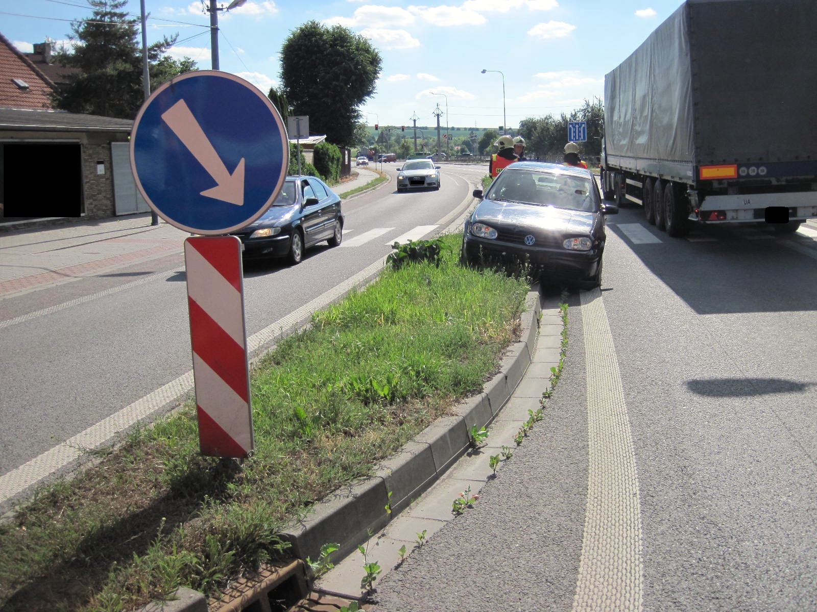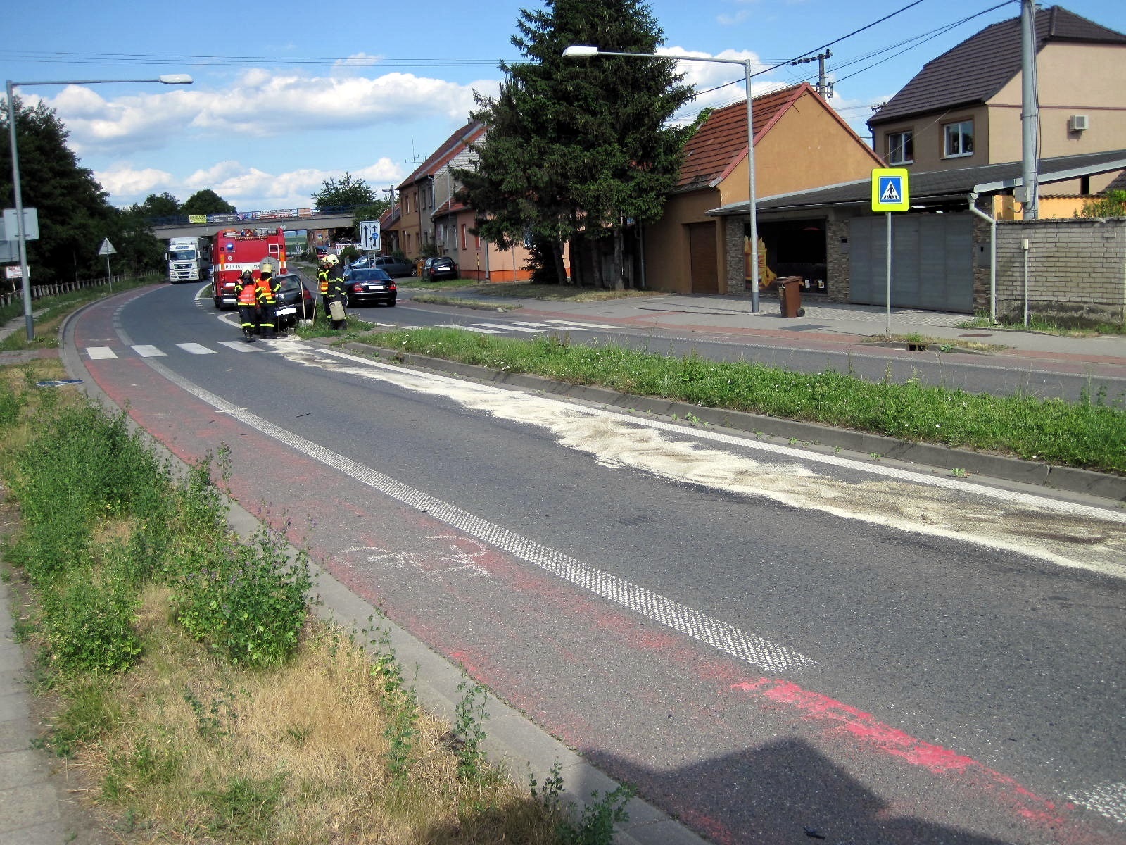 Hasiči byli na místě do tří minut od vyhlášení poplachu. Jak bylo velitelem potvrzeno, na ulici U Korečnice sjel řidič se svým vozem VW Golf mimo jízdní pruh na středový pás, kde poškodil dopravní značení a prorazil olejovou vanu vozidla. Ke zranění řidiče naštěstí nedošlo.
