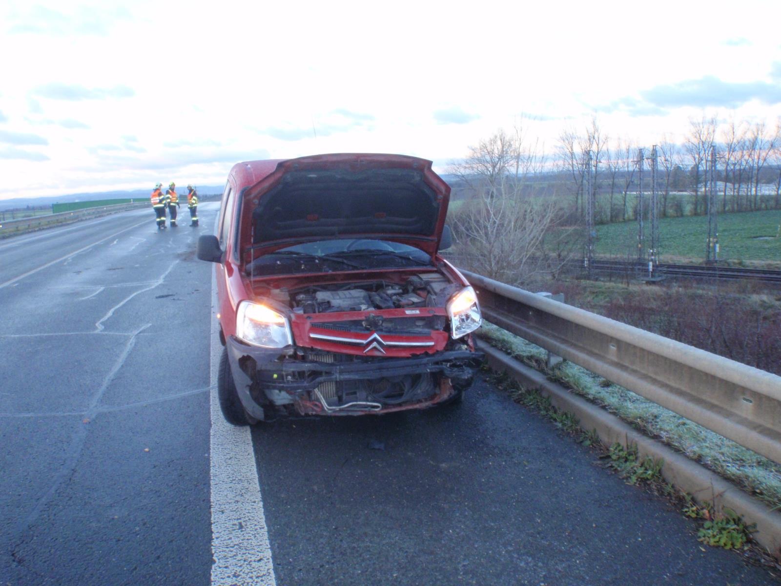 Na nadjezdu v době likvidačních prací došlo k nehodě dodávkového vozu Citroen. Řidič opět nebyl zraněn. Uniklé provozní kapaliny hasiči zasypali sypkým sorbetem.