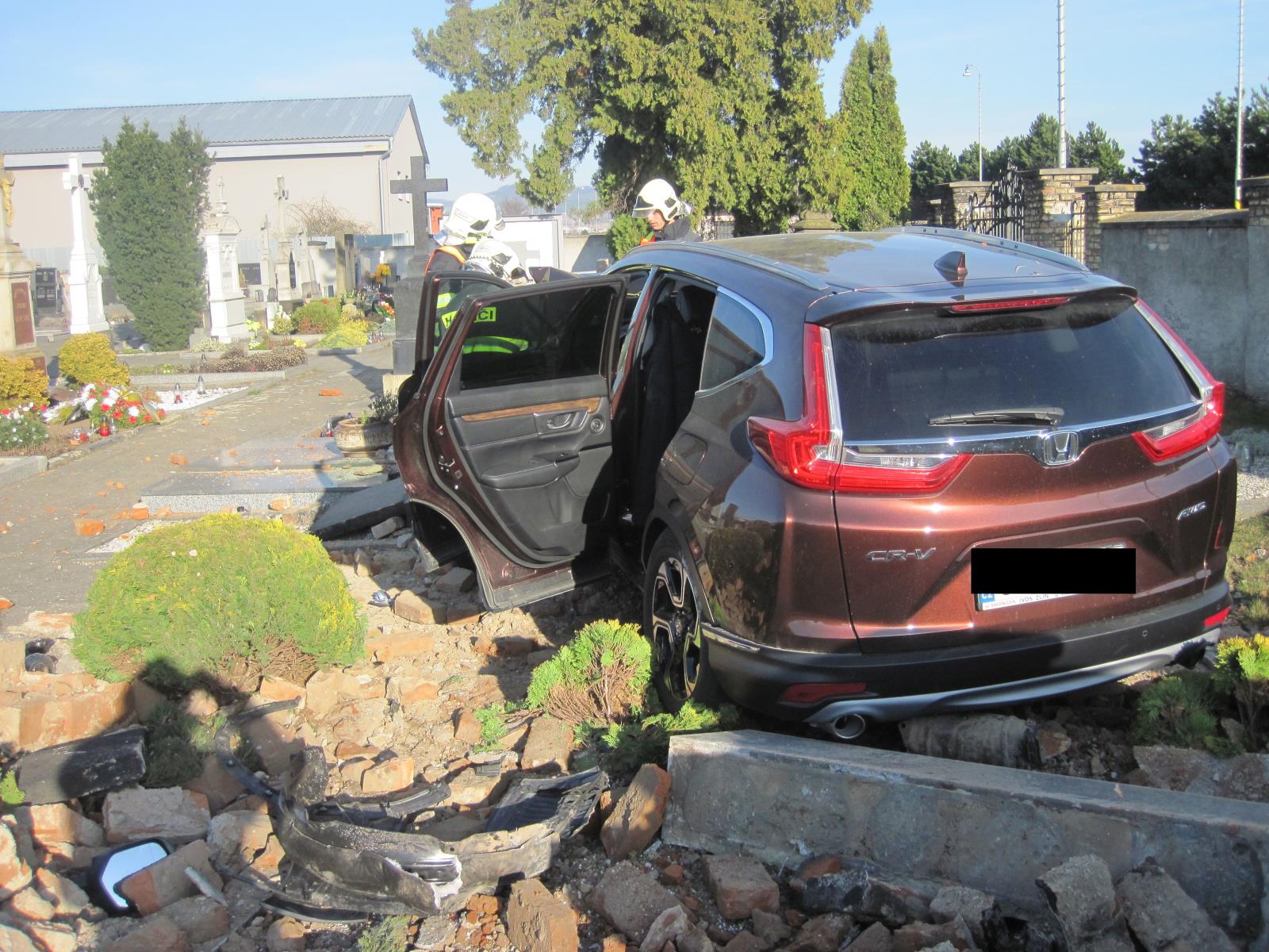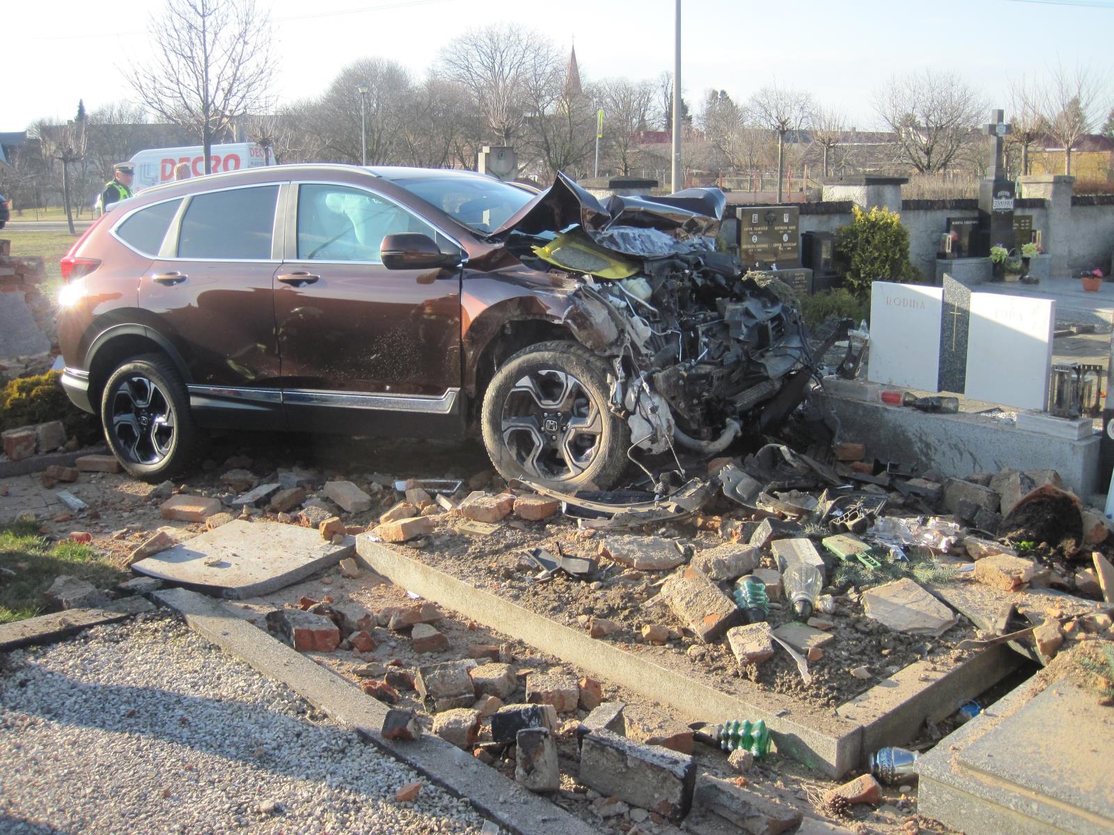 Nehoda se stala v obci Třebětice na Kroměřížsku. Zde řidič osobního vozidla sjel mimo cestu, narazil do zdi místního hřbitova a zastavil se až na hrobech.