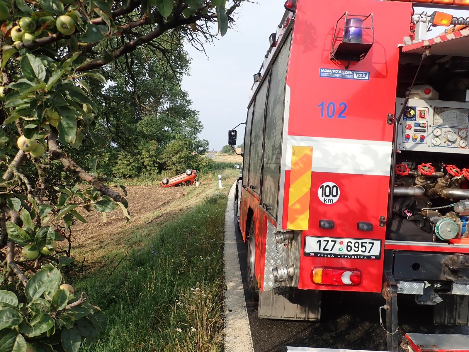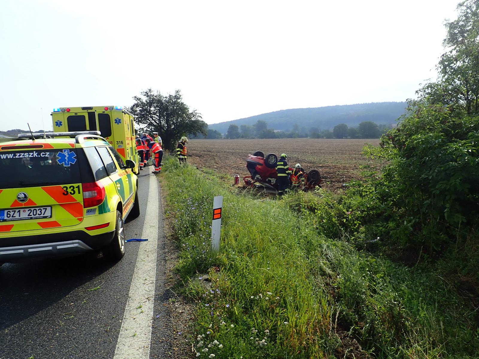 Zranění ženy si vyžádala dnes, 23.7.2018, havárie vozidla. Řidička při jízdě u obce Jarohněvice na Kroměřížsku vjela se svým vozidlem mimo komunikaci na pole, kde se převrátila na střechu.