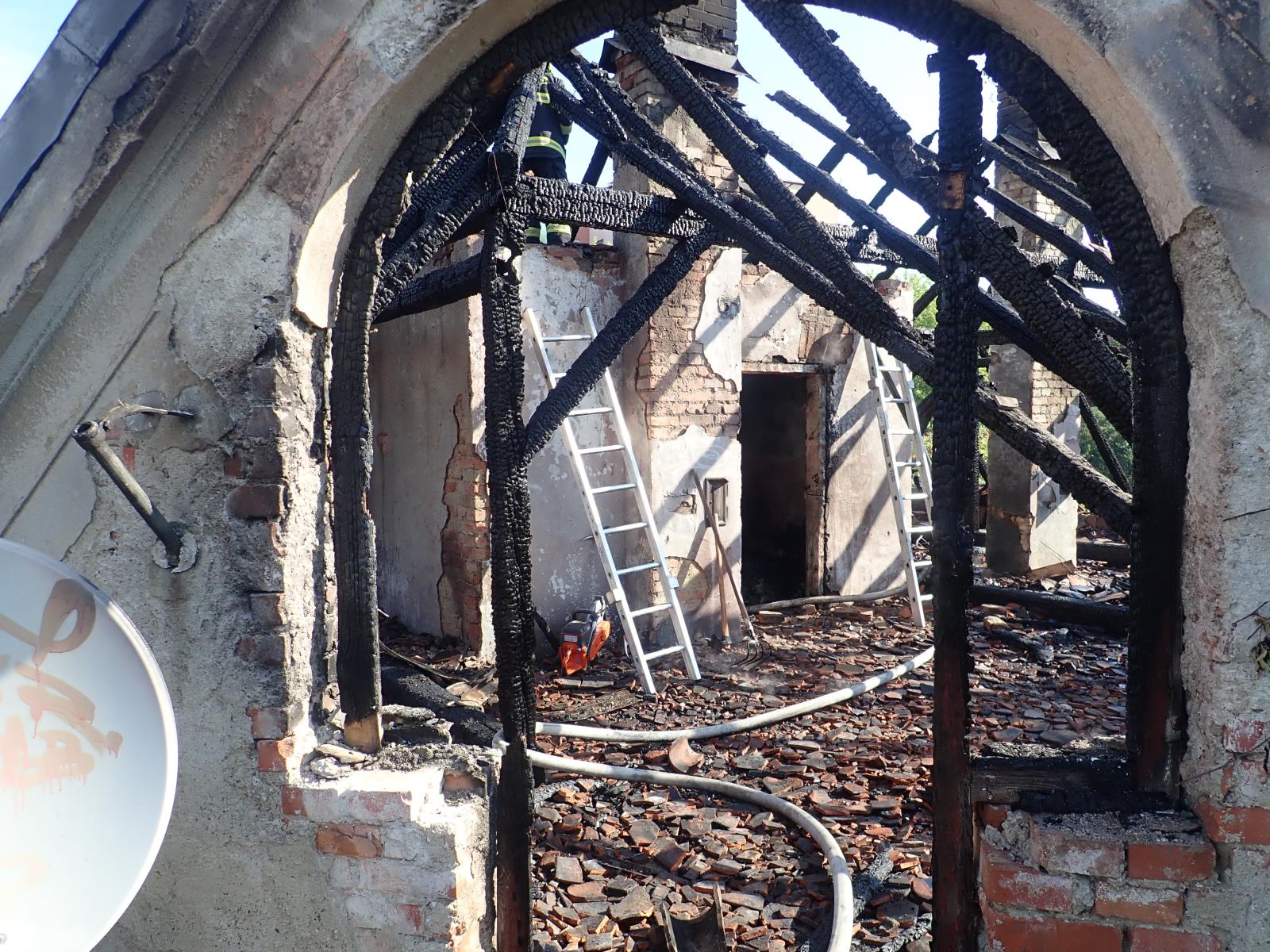 Po příjezdu na místo hasiči ihned zahájili hasební práce, neboť v plamenech byla celá střecha a půdní prostory domu. K hašení použili čtyři hasební proudy vody. Zásah jim však komplikovaly náletové dřeviny, které hustě rostly okolo. Hasiči si tak motorovou pilou museli cestu k domu prořezat.