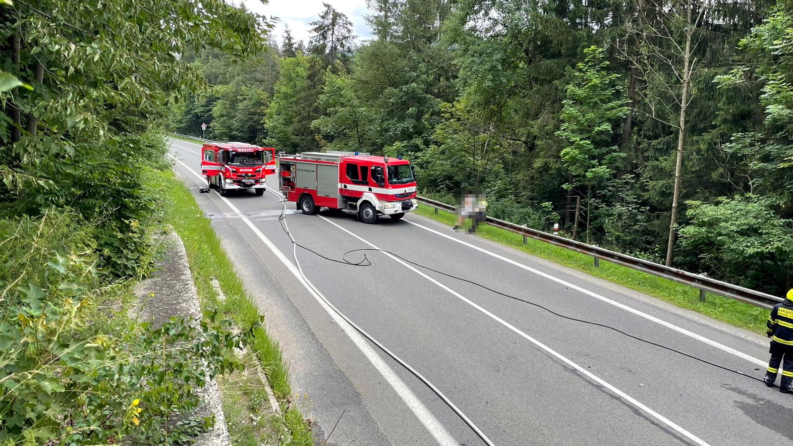 (20.7.2021) V 15:37 hodin přijalo krajské operační středisko informaci o požáru kamionu po nehodě, ke které došlo na silnici č. 35 za obcí Horní Bečva ve směru na Slovensko. Protože zde bylo podezření na zaklíněnou osobu, k události byly vyslány profesionální jednotky ze stanic Valašské Meziříčí a Zlín s cisternami a technickým kontejnerem a posilové jednotky z obcí Rožnov pod Radhoštěm, Horní Bečva a Hutisko-Solanec.