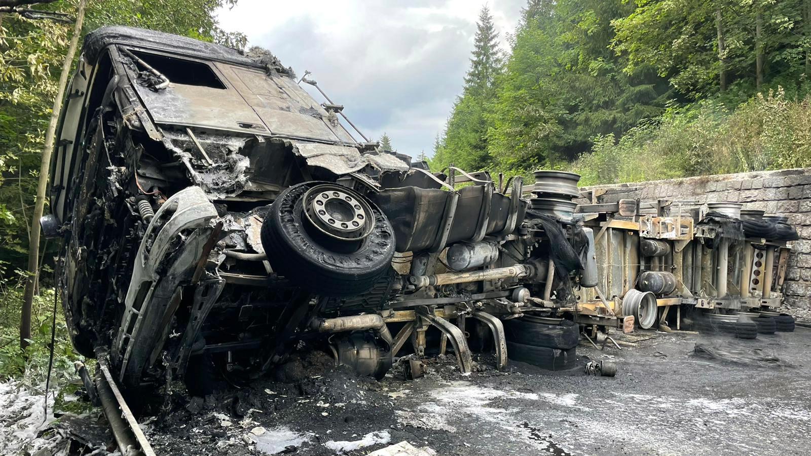 Rozsáhlý požár kamionu zablokoval silnici za Horní Bečvou ve směru na Slovensko