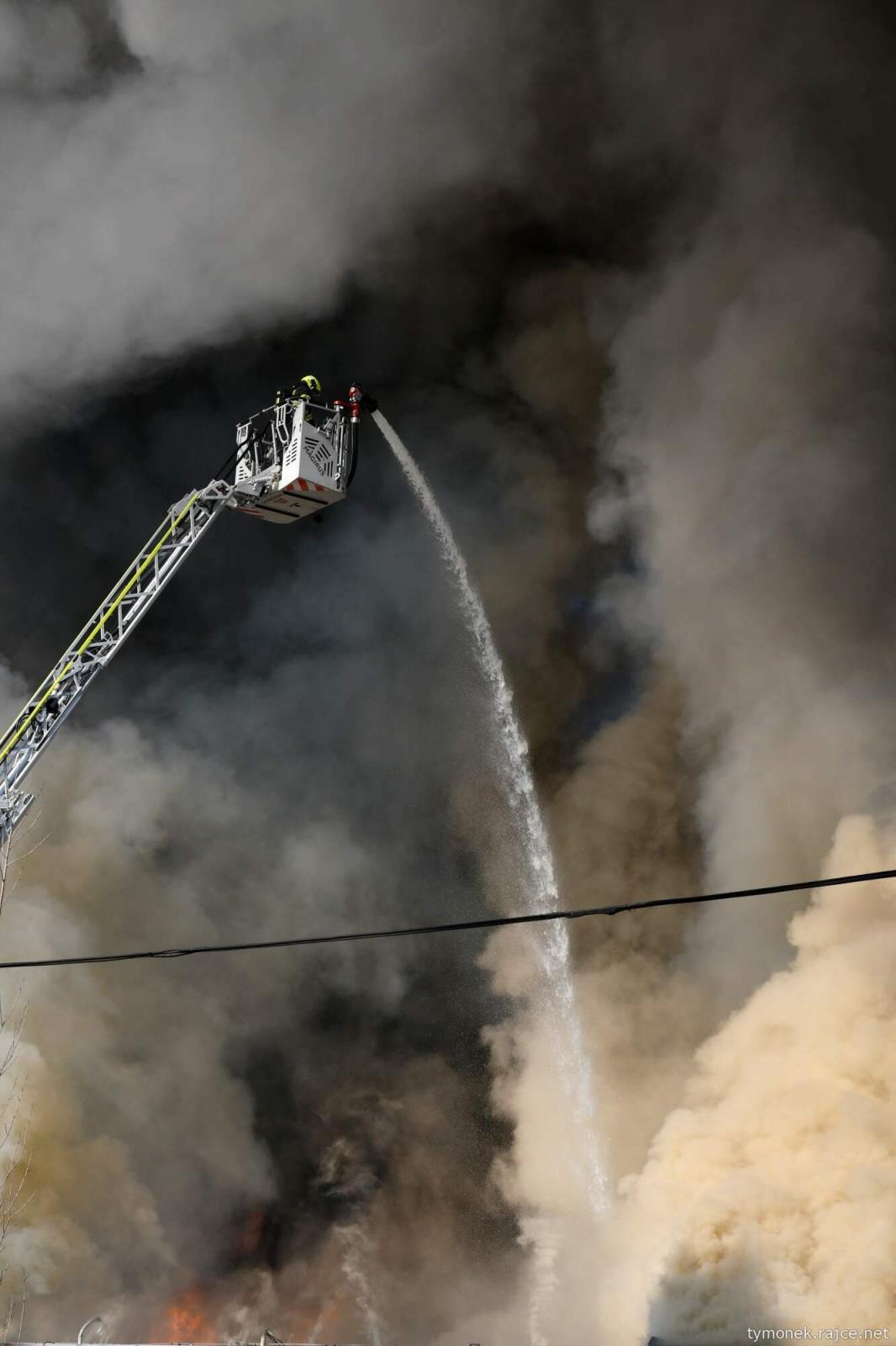 Na místě byla požárem zasažena průmyslová hala včetně přilehlých obchodních prostor. Zásah je vzhledem k počasí a rozlehlosti budov velmi náročný. Byl zřízen štáb velitele zásahu a obyvatelé byli informováni o nebezpečných zplodinách v ovzduší. Na místo byla velitelem zásahu povolána také jednotka z Vyškova s dronem, a to z důvodu komplexního pohledu na celý prostor požářiště. U události zasahují i příslušníci chemické laboratoře z Frenštátu pod Radhoštěm, kteří měří koncentraci škodlivin v ovzduší.