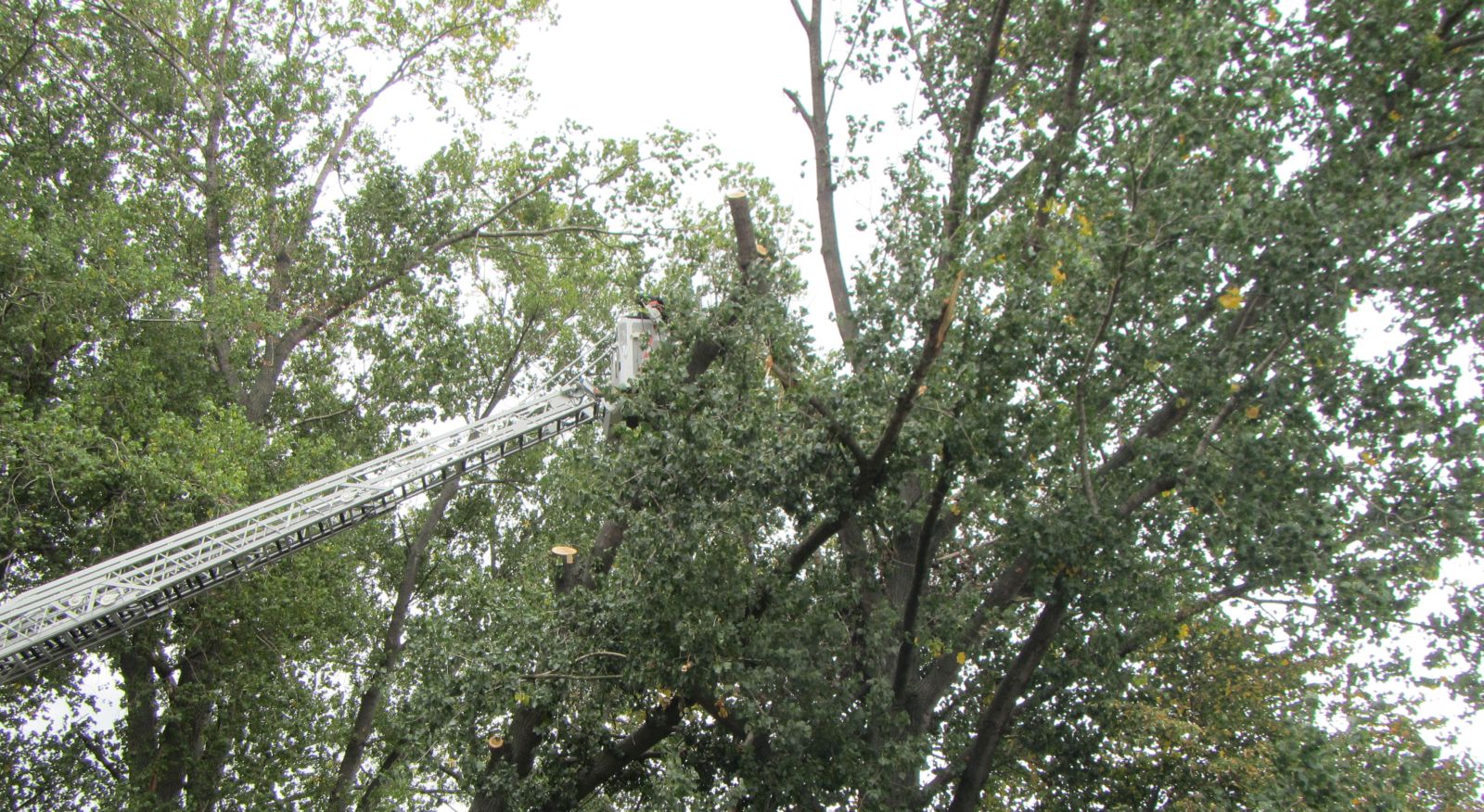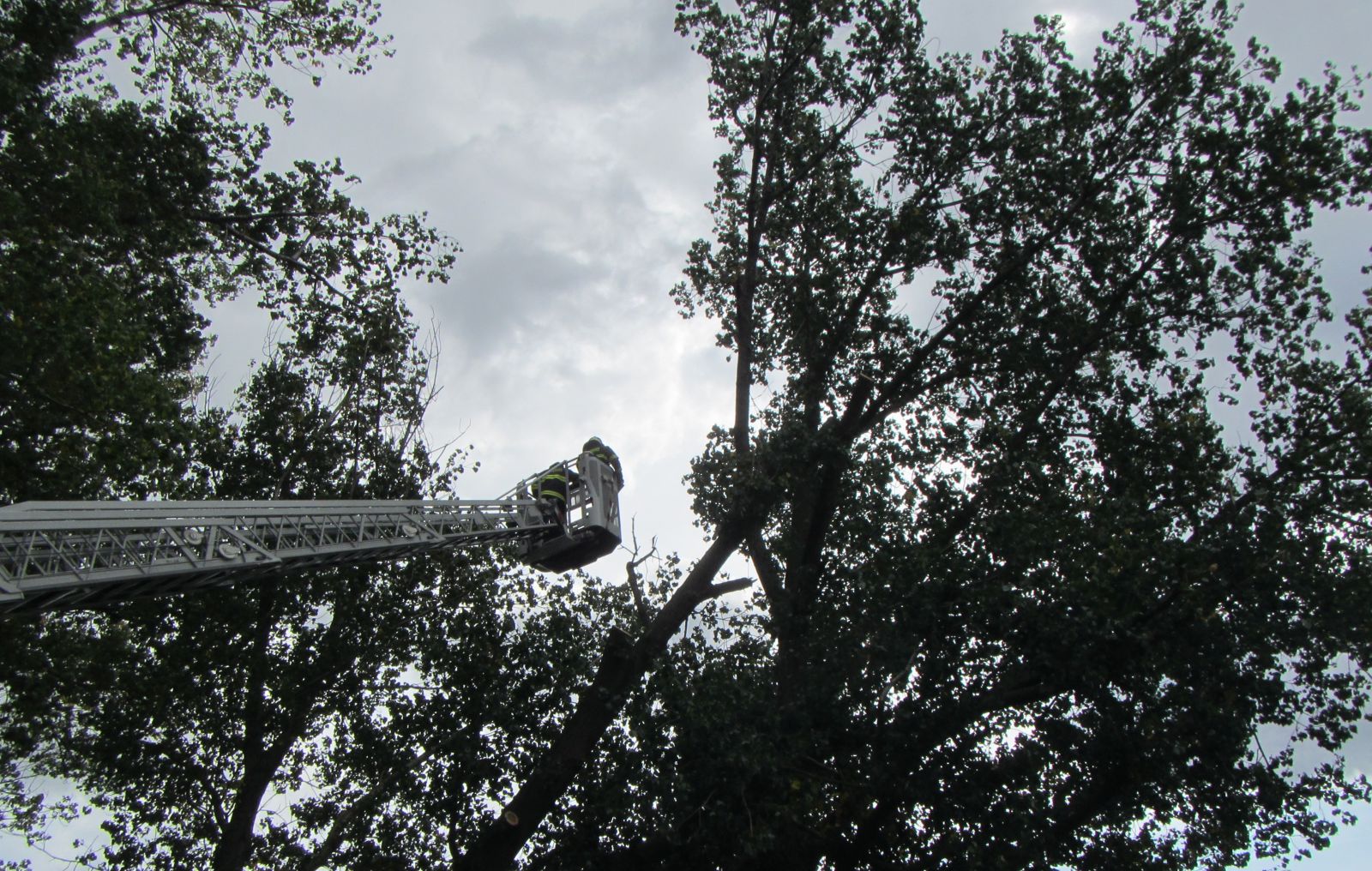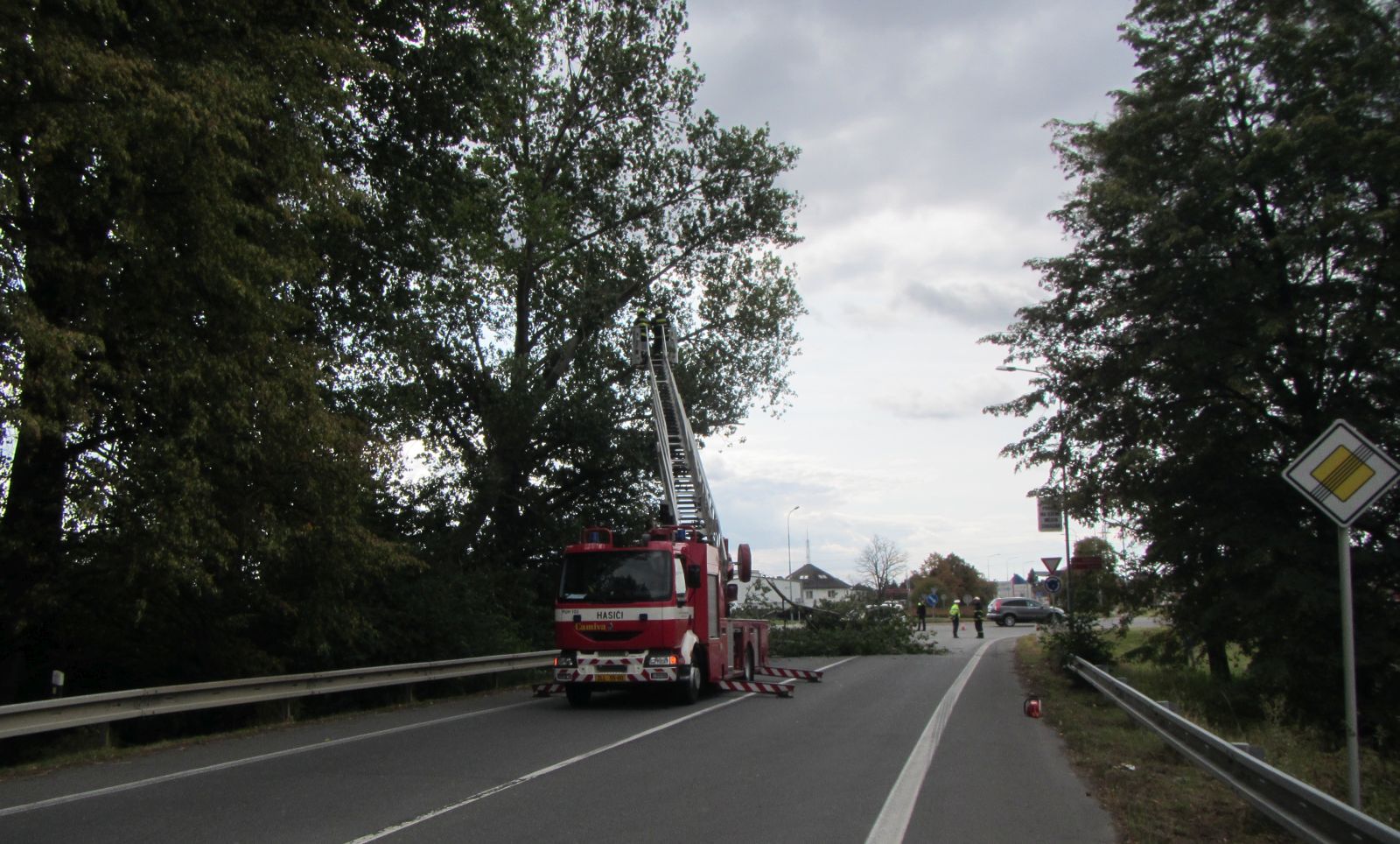 S likvidací vyvráceného stromu pomohla výšková technika hasičů
