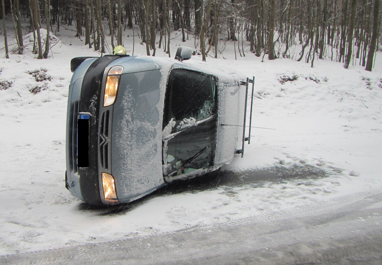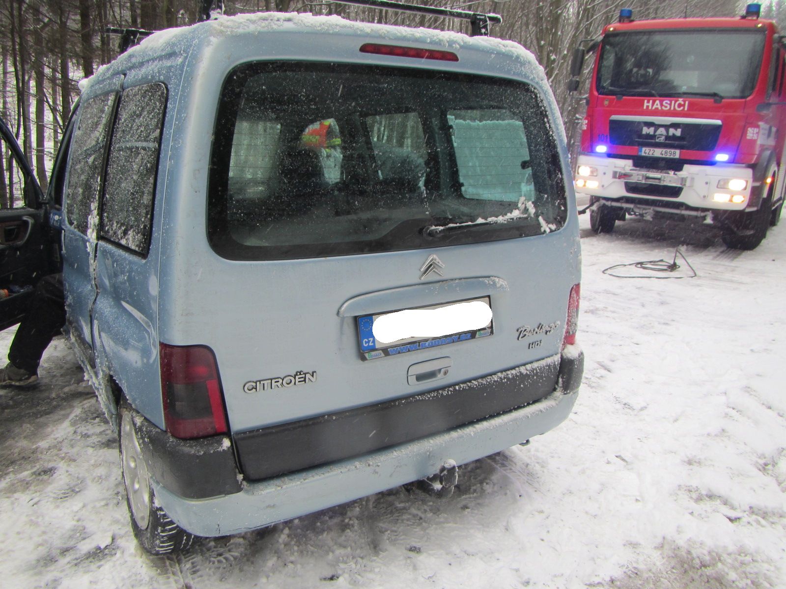 Převrácené osobní vozidlo zn. Citroen částečně blokovalo provoz na čerstvě zasněžené a zledovatělé komunikaci. Hasiči zkontrolovali zda nedošlo k úniku provozních kapalin a s pomocí lana a svého zásahového vozidla automobil převrátili zpět na kola. Celý zásah zabral hasičů pouze několik minut.