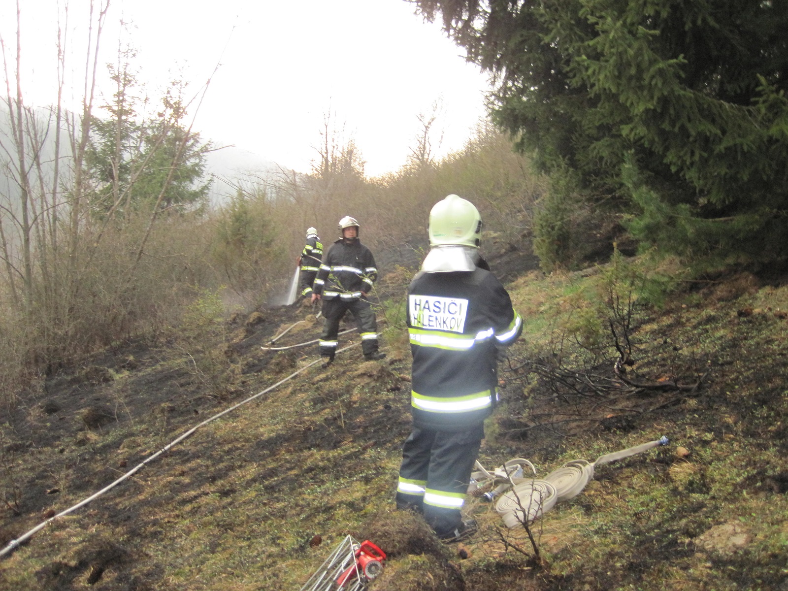 Zprávu, že hoří les a louka na ploše 100 metrů délky a 100 metrů šířky, přijali hasiči v 15:31 hodin. K uhašení požáru byla vyslána jednotka profesionálních hasičů z požární stanice Vsetín, a dále jednotky dobrovolných hasičů z Halenkova, Karolinky a Nového Hrozenkova. Hasiči vyjeli s celkem pěti automobilovými stříkačkami a jedním technickým automobilem.