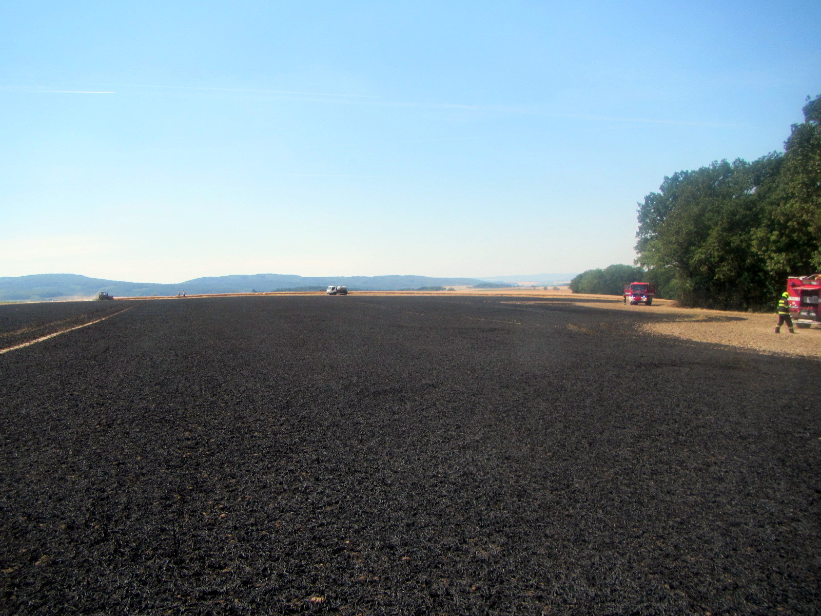 Mezi nejrozsáhlejší patřil požár pole s obilím v obci Lukoveček na Zlínsku, ke kterému bylo vysláno hned 9 jednotek s cisternami. Požár vznikl technickou závadou na kombajnu, který prováděl žňové práce. Díky rychlému příjezdu jednotek a také zemědělské techniky s traktory se podařilo zabránit jeho rozšíření do blízkého lesa a na další velké pole s obilím. Požárem bylo zničeno asi 3,5 ha obilí.