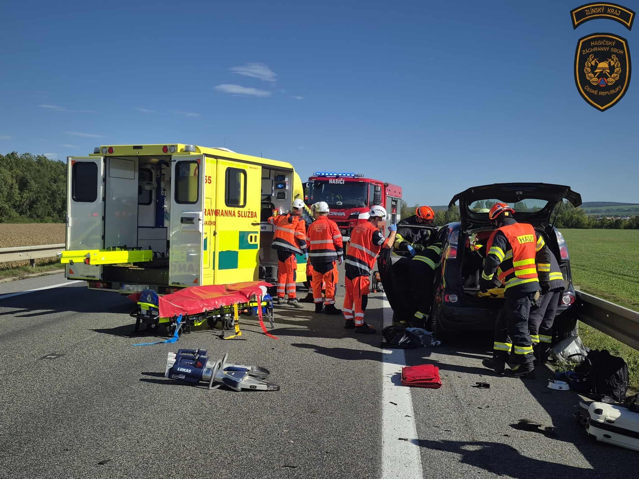 První zásah se odehrál na silnici E50 u Kunovic na Uherskohradišťsku. Došlo zde ke srážce několika vozidel, přičemž jednu zraněnou osobu museli hasiči vyprostit z havarovaného auta. Po dobu zásahu byla důležitá komunikace zcela uzavřena, což způsobilo výrazné dopravní komplikace.