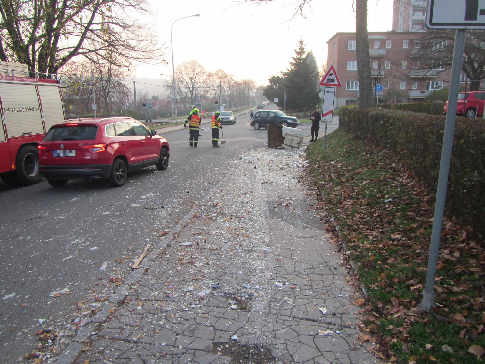 K této neobvyklé události byli pár minut po sedmé hodině ranní městskými strážníky přivolaní profesionální hasiči ze stanice Zlín. Velké množství skla, nacházející se v celé šíři komunikace, komplikovalo v ulici dopravu.