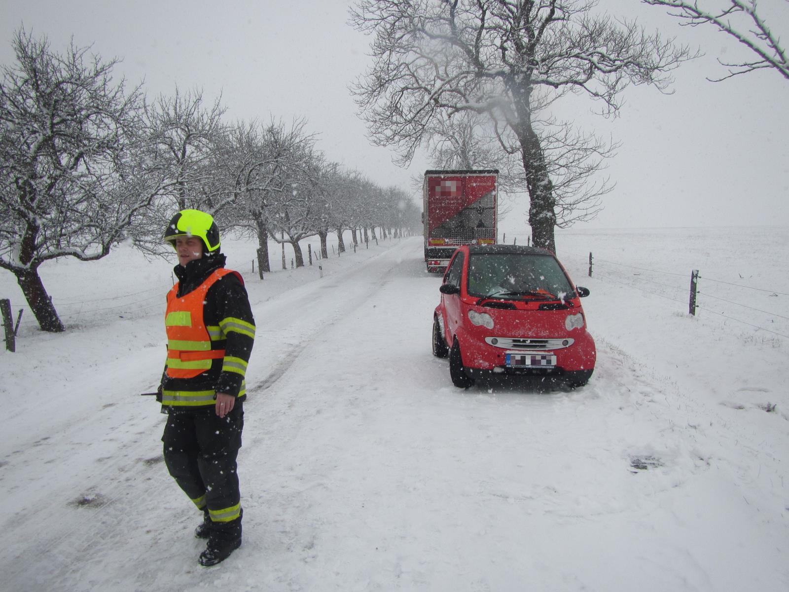 Sníh i během odpoledne komplikoval řidičům jejich jízdu a někteří do svého cíle nedojeli. Hasiči tak vyjížděli k dalším devíti dopravním nehodám.