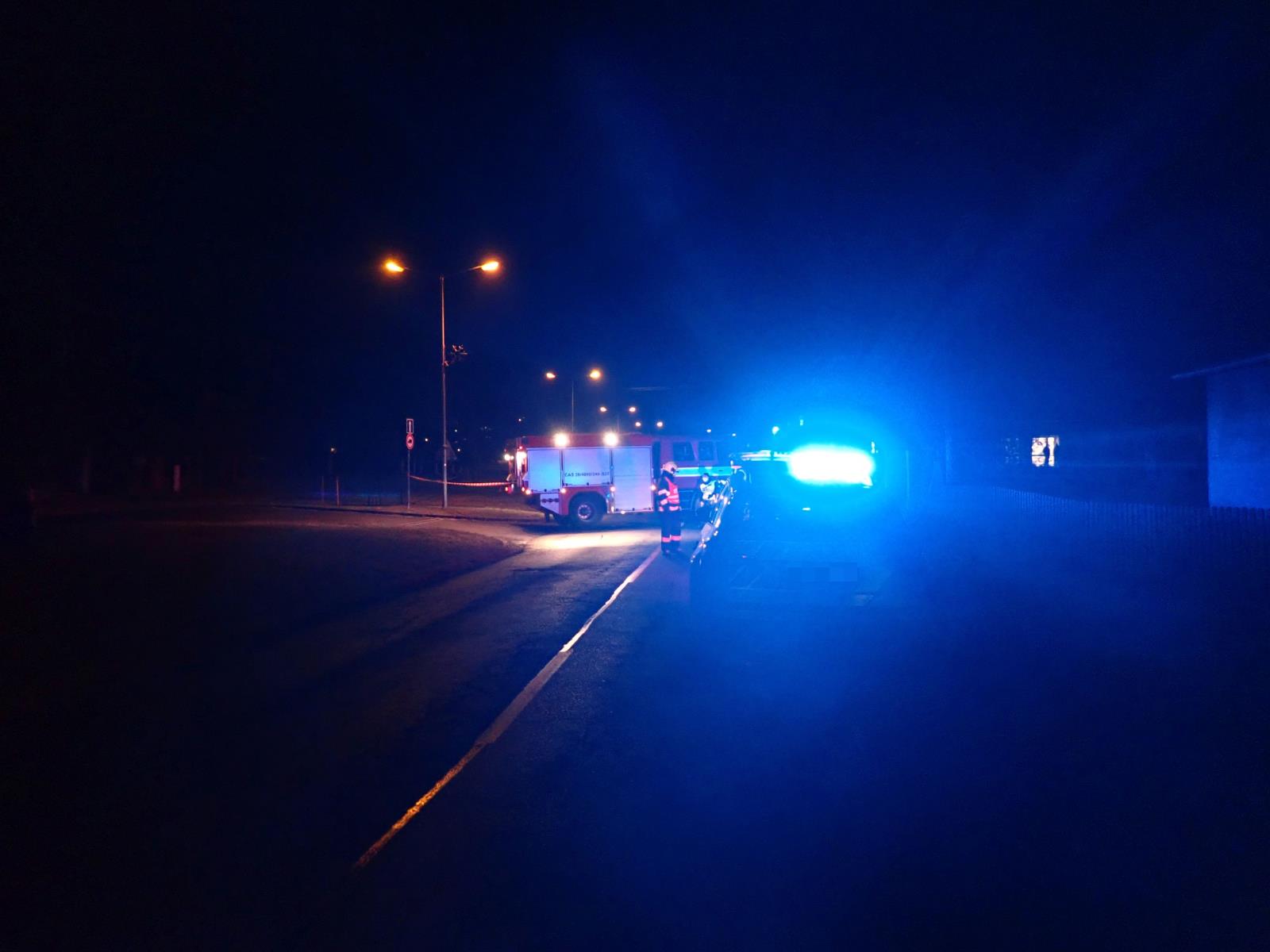 Hasiči uzavřeli v místě nehody komunikaci, prostor vytyčili páskou a nasvětlovali jej pro vyšetřující policisty.