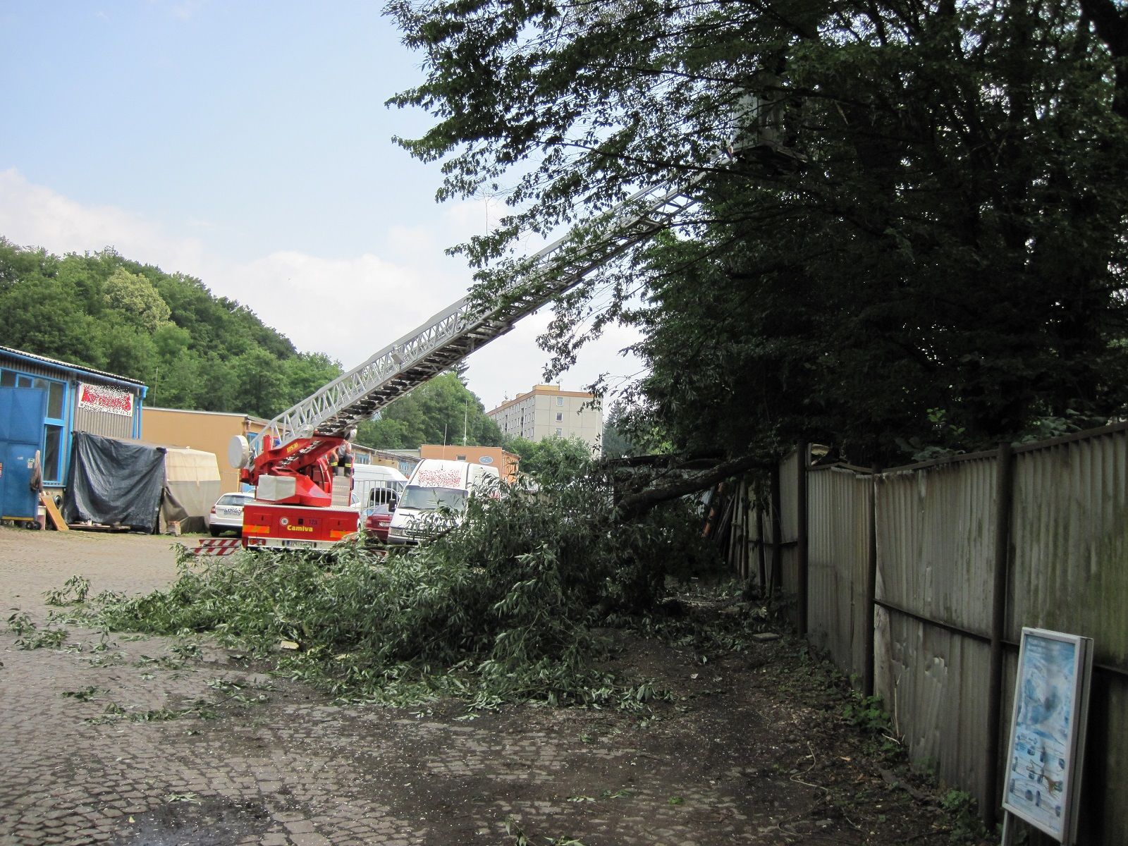 29. 6. 2018 odstraňovali  profesionální hasiči  v poledne  větve stromu nad zaparkovanými automobily v areálu autoservisu ve Vsetíně.