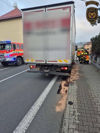 Dopoledne přijali hasiči z Vsetína hlášení o dopravní nehodě v obci Jasenná na Zlínsku. Podle informací hasičů došlo ke srážce osobního automobilu s kamionem. Náraz způsobil poškození palivové nádrže nákladního vozidla, ze které začala unikat nafta i další provozní kapaliny. Situaci komplikovalo také to, že kamion stál u krajnice na frekventované komunikaci.