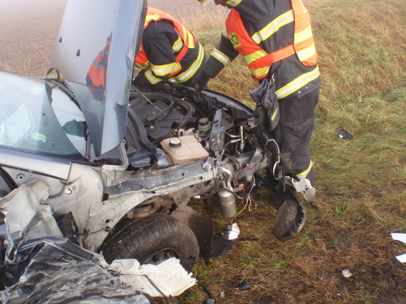 Průzkumem hasiči zjistili, že žádný z účastníků dopravní nehody není zraněný. U havarovaných vozidel proto odpojili akumulátory a provedli protipožární opatření. Asi po 10 minutách si jeden z řidičů začal stěžovat na bolest krku. Velitel zásahu si proto vyžádal příjezd zdravotníků, kteří zraněnou osobu později odvezli do nemocnice v Kroměříži.