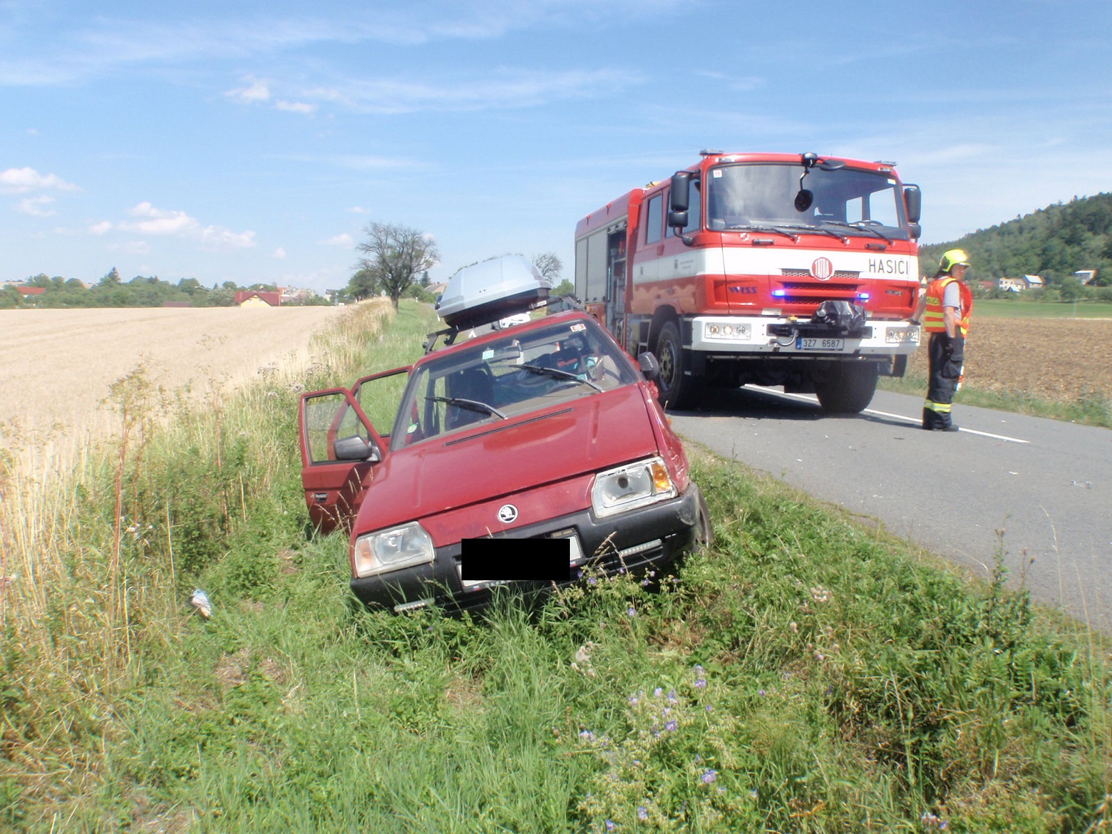 Při příjezdu k nehodě hasiči zjistili, že došlo k srážce tří osobních automobilů. Jedno vozidlo stálo v jízdním pruhu ve směru na Holešov, další dvě vozidla byla v příkopě mimo vozovku. Z vozidel neunikaly provozní náplně, ani pohonné hmoty. V jednom z vozidel byla jedna zraněná osoba, které hasiči poskytli předlékařskou pomoc.