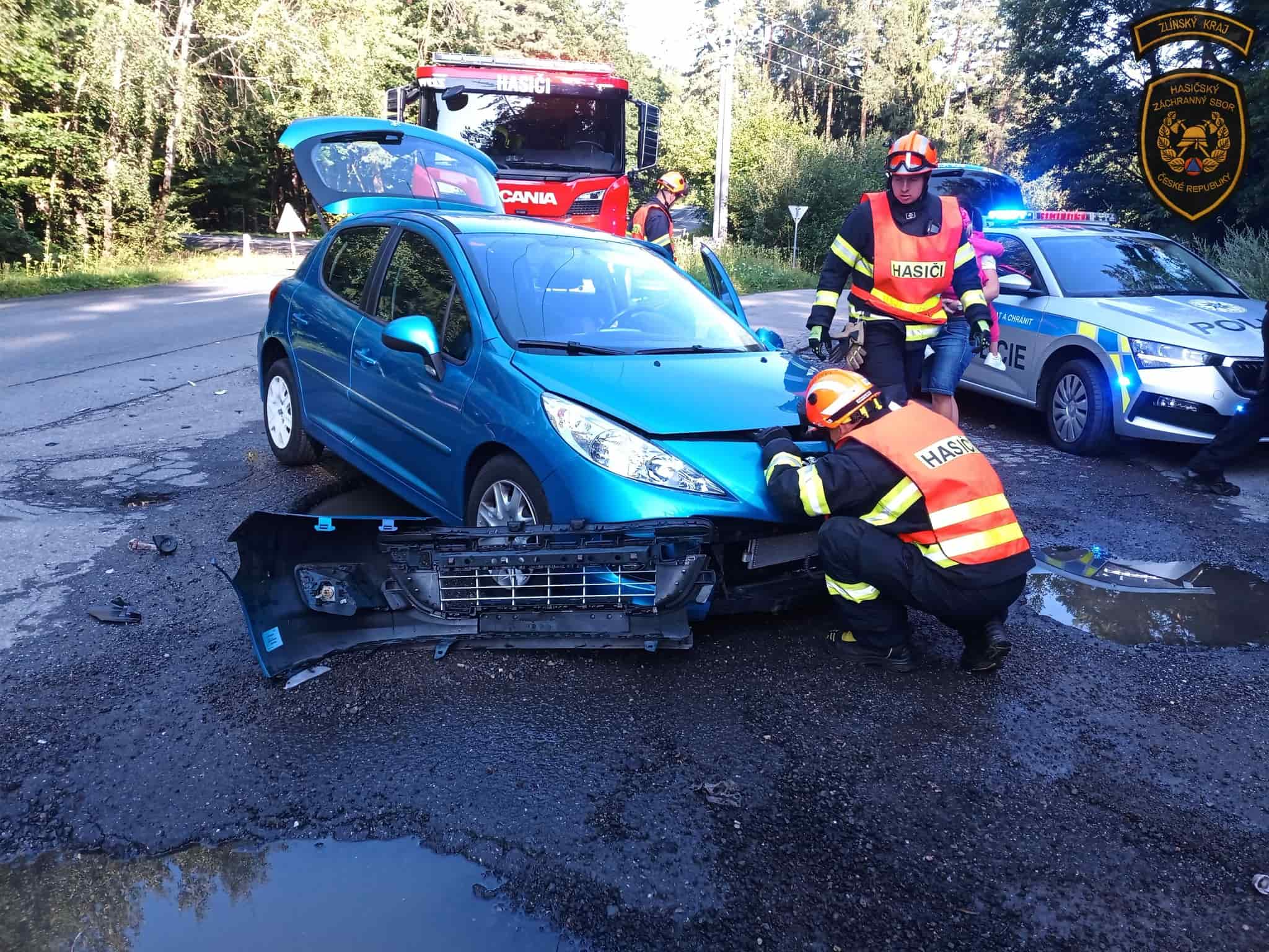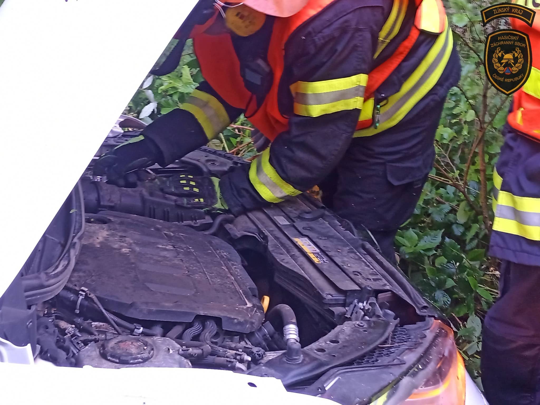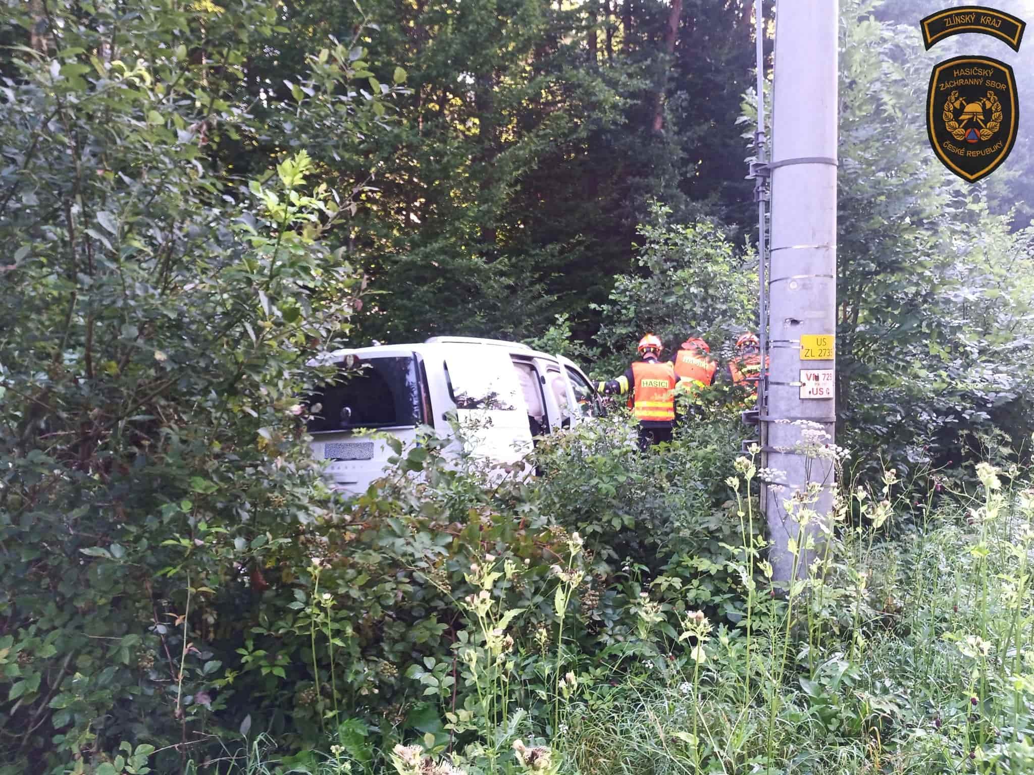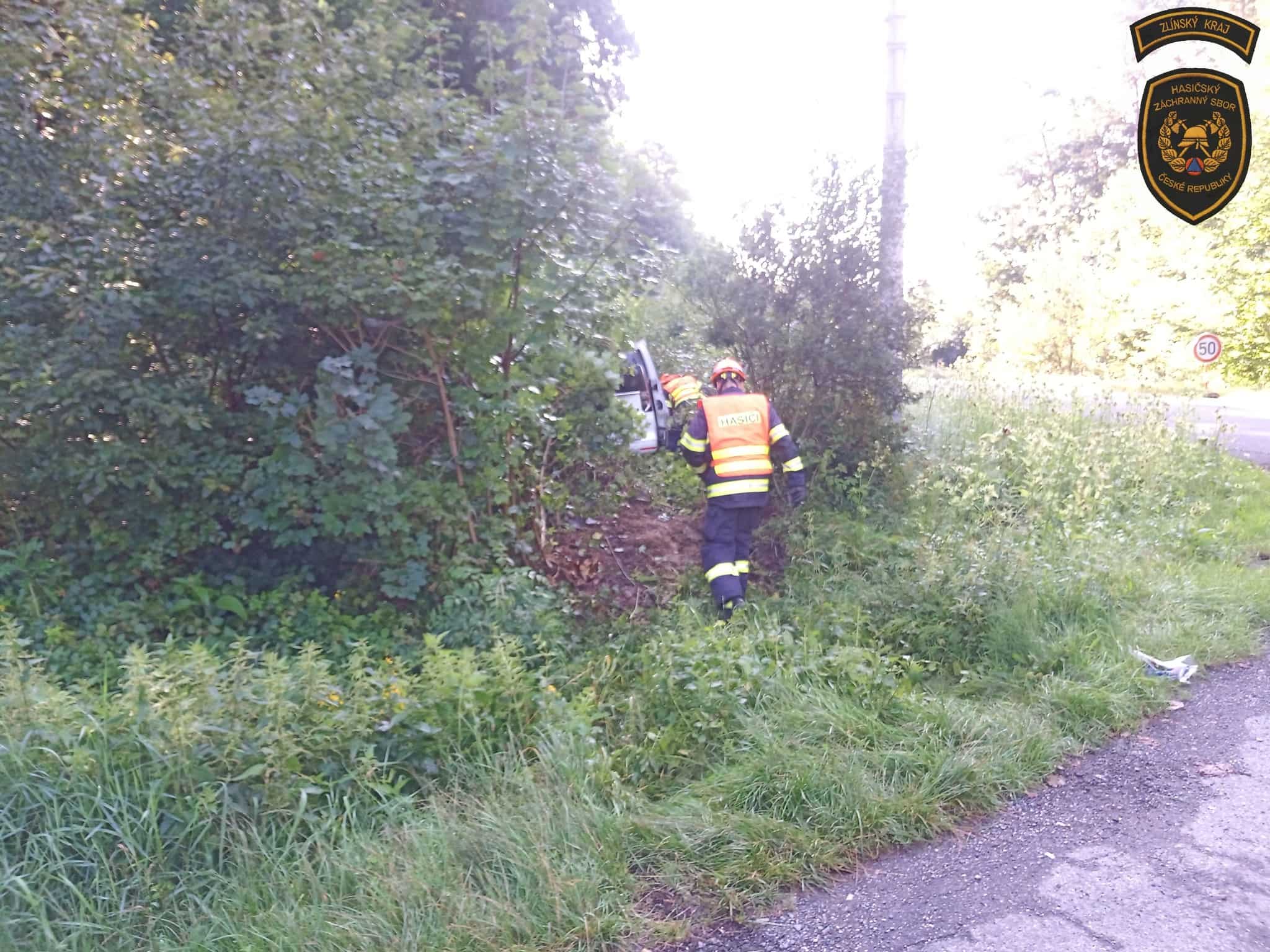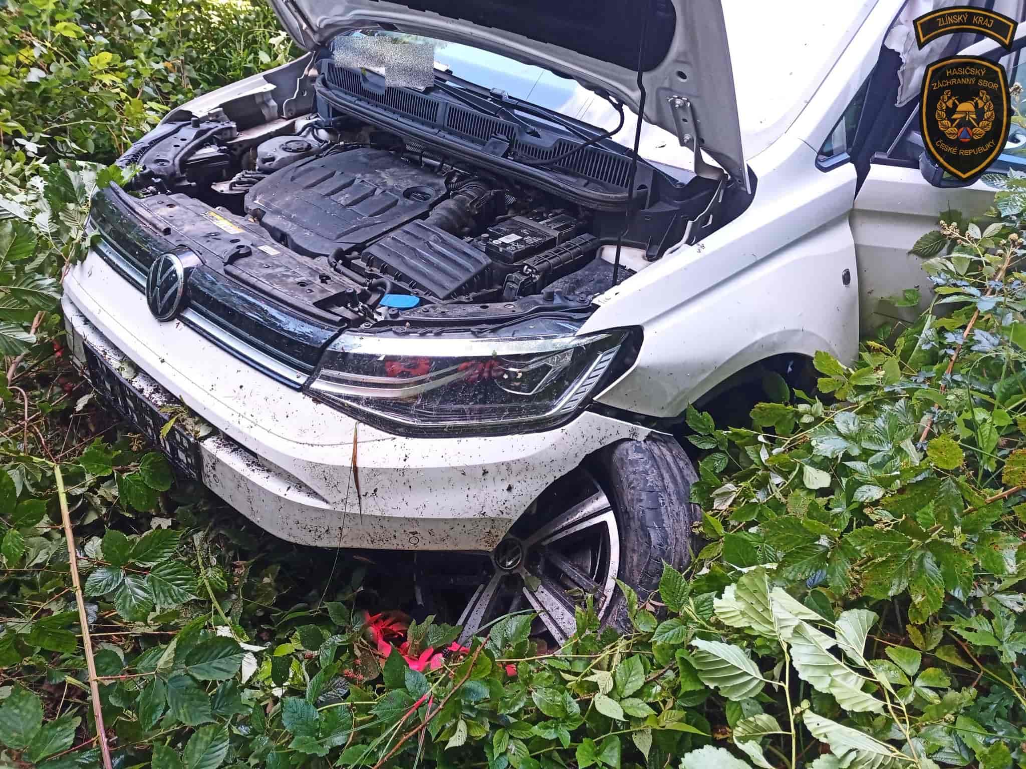 Druhé vozidlo značky Volkswagen skončilo mimo silnici v porostu. Řidič utrpěl zranění a jeho vyproštění komplikovaly náletové dřeviny. Hasiči si však s náročným terénem poradili a muže předali do péče zdravotnické záchranné služby.