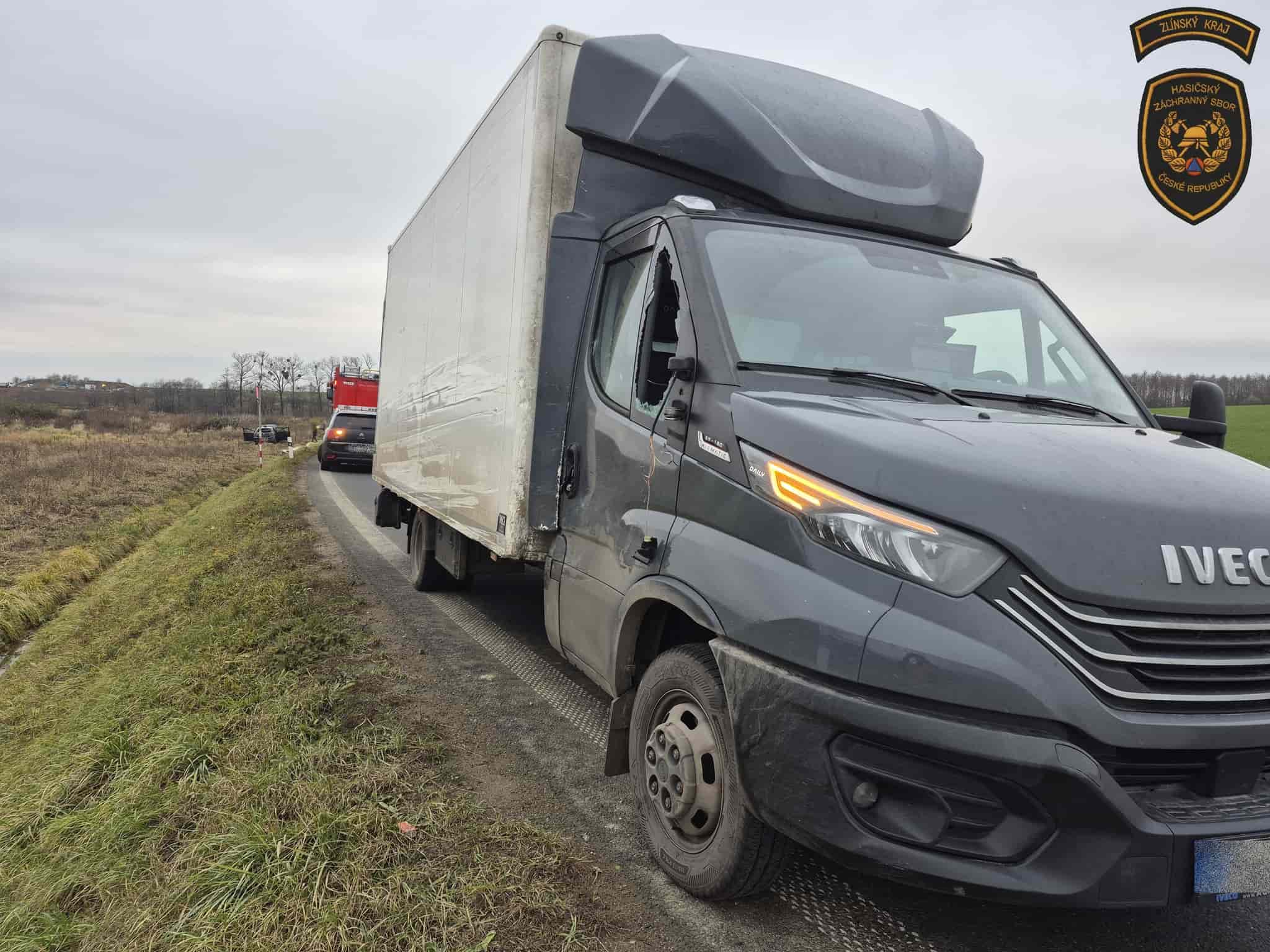 Ve Fryštáku v části Žabárna došlo ve čtvrtek dopoledne ke srážce dodávky a osobního auta. Osobní vůz byl odhozen do pole a jeho řidiče museli hasiči vyprostit. Muž byl předán zdravotníkům, řidič dodávky zůstal bez zranění. Hasiči zajistili vozidla, zkontrolovali úniky kapalin a pomohli s odtahem. Policie šetří okolnosti nehody.