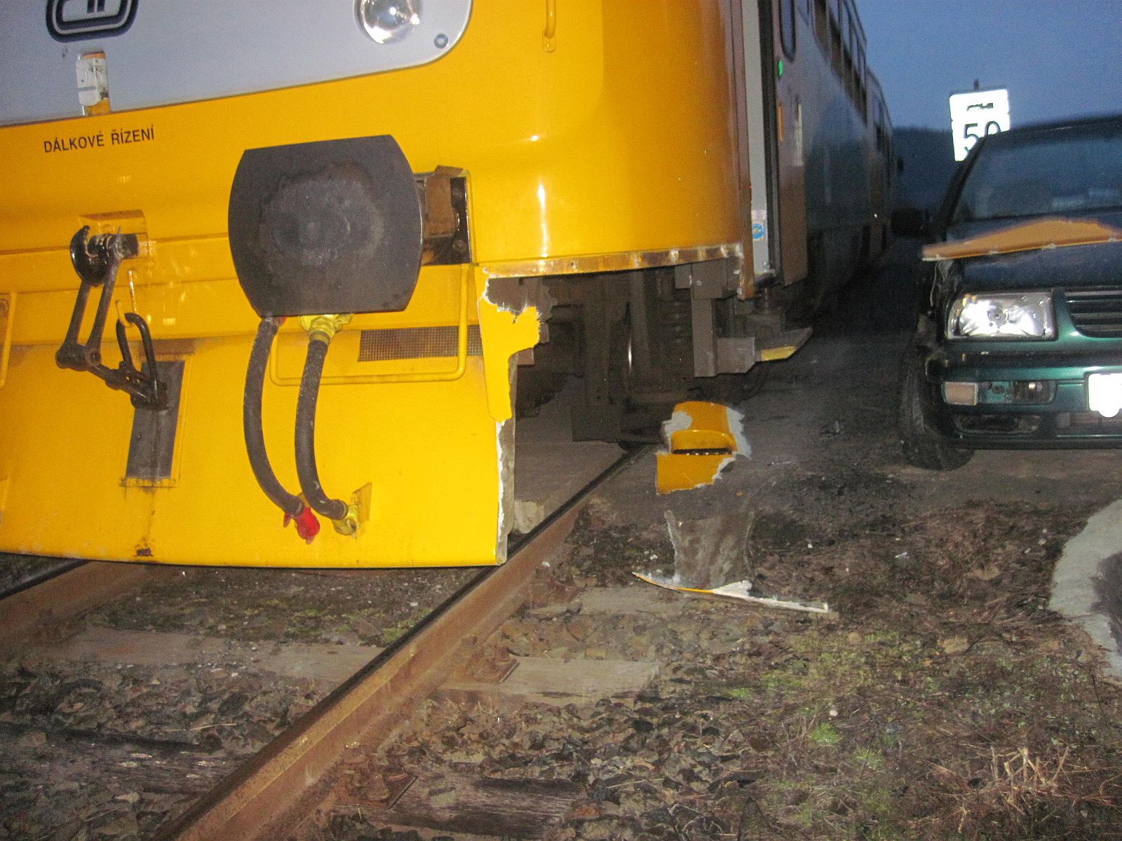 Střet osobního vozidla s vlakem se obešel bez zranění.