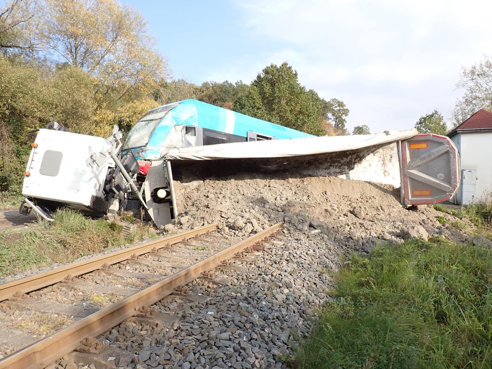 (11.10.2022) Hlína zasypala koleje.