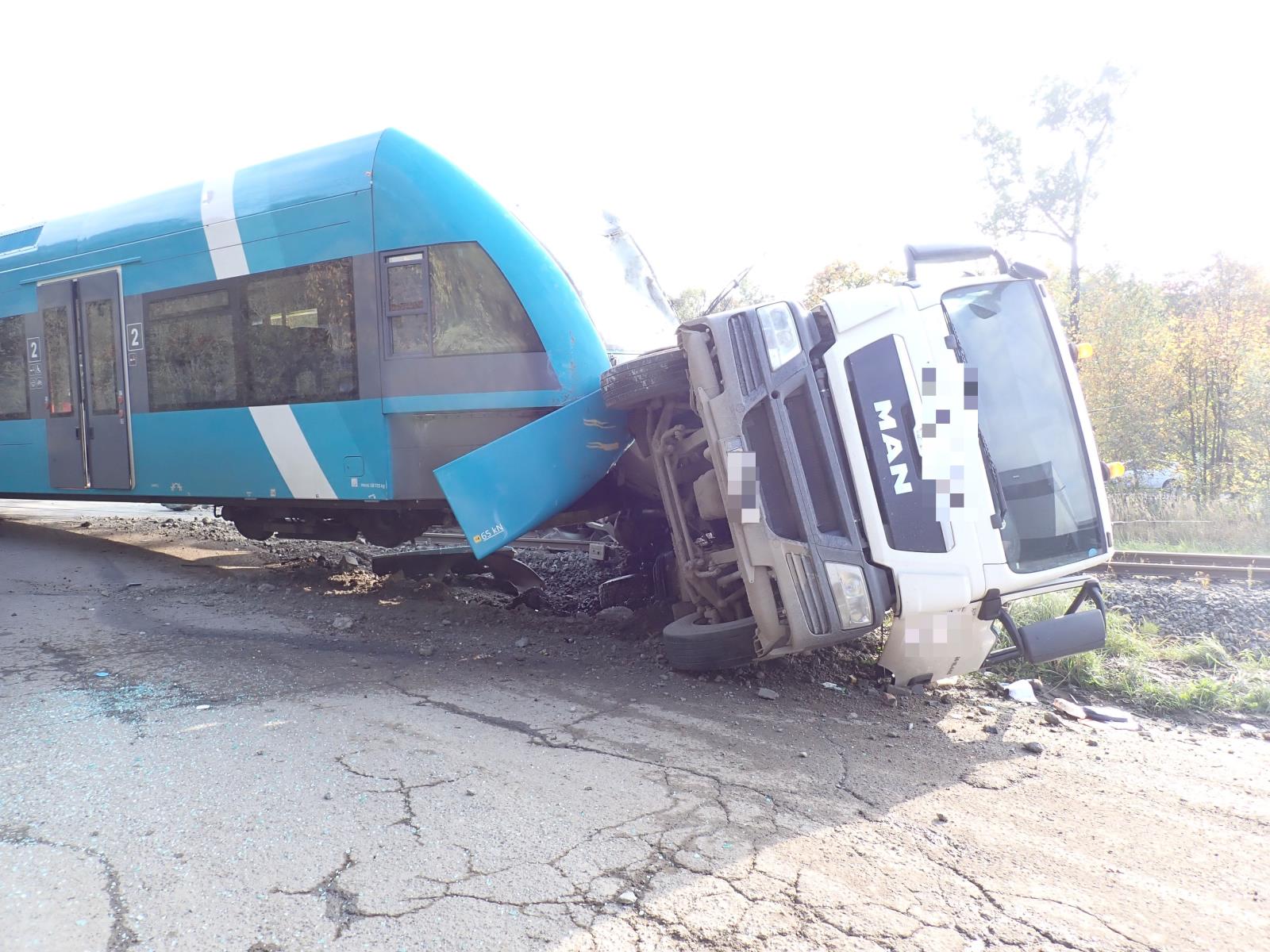Střet vlaku a náklaďáku u Valašského Meziříčí